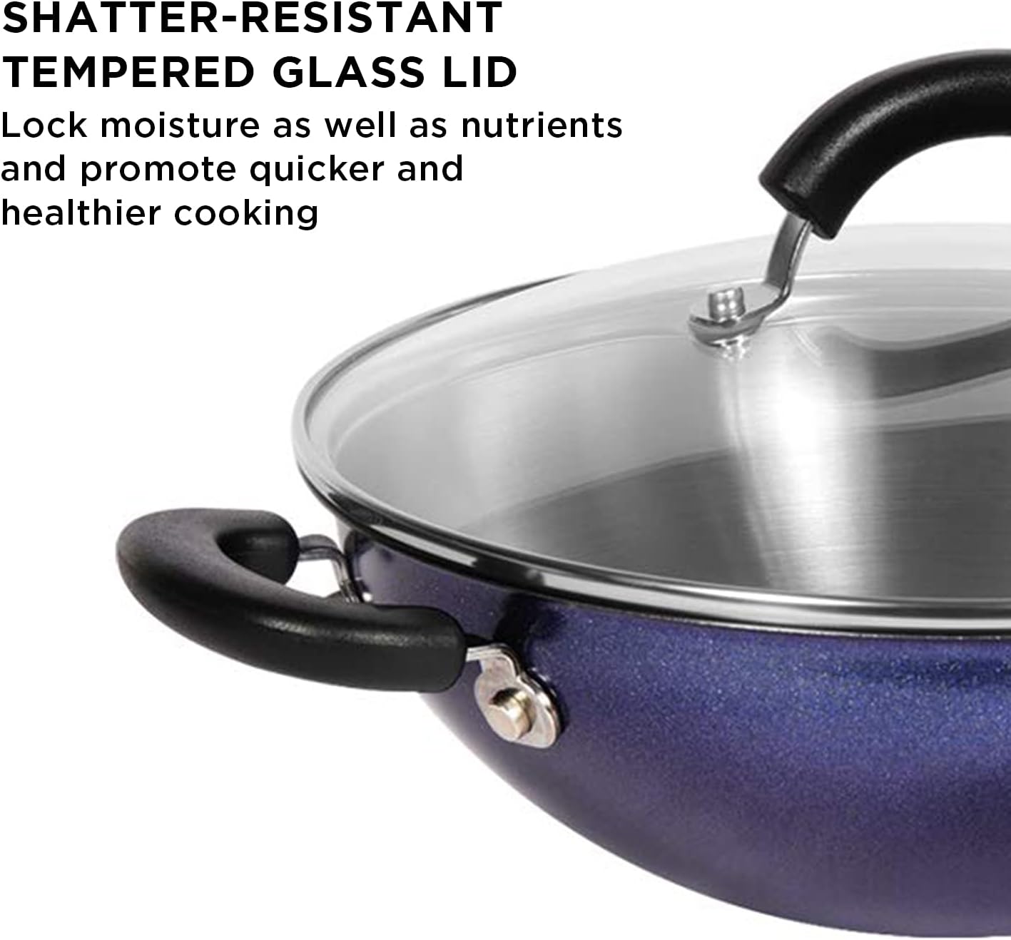 Meyer Centennial Nickel Free Kadai | Steel Kadhai for Deep Frying | Steel Cookware | Deep Kadai | Kadai with lid for Cooking | Kadhai Induction Base, 22cm, Blue Diamond