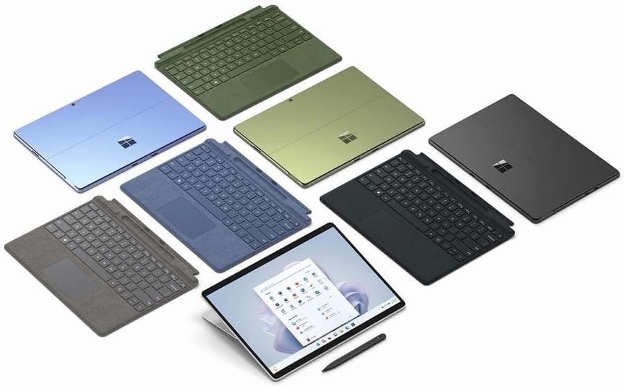 Power your day with Surface Pro 9 | Immerse yourself Think big with a virtually edge-to-edge 13″ PixelSense™ touchscreen. Flex from zero to hero Get your perfect viewing angle with the adjustable built-in kickstand. Adjust and pivot Jump from tablet to laptop with a Surface Pro Signature Keyboard. Adapt to any space Charge accessories, dock to monitors, and transfer files with two USB-C® and Thunderbolt™ 4 ports on select models. Feels like pen on paper Surface Slim Pen 2 provides natural feedback for note taking-always securely stored and charging wirelessly in the keyboard. Built for everything you do, anywhere you do it | The perfect angle Enjoy face-to-face calls in 1080p HD and an improved camera angle. Clean desktop, clear mind With Windows 11 Snap Layout, organize active apps into perfect grids. Entertainment anywhere With apps like Amazon Prime, watch your favorite movies and shows in full HD. Xbox Game Pass Ultimate Access cloud gaming and a library of over 100 high-quality games. Express yourself Unleash your creativity with Surface Slim Pen 2 and apps like Adobe Fresco. Experience next generation video calls enabled by AI On Surface Pro 9 with 5G, you (not your barking dog) are at the center of every call with Automatic Framing. Take video calls to the next level with Windows Studio, powered by the Neural Processing Unit.