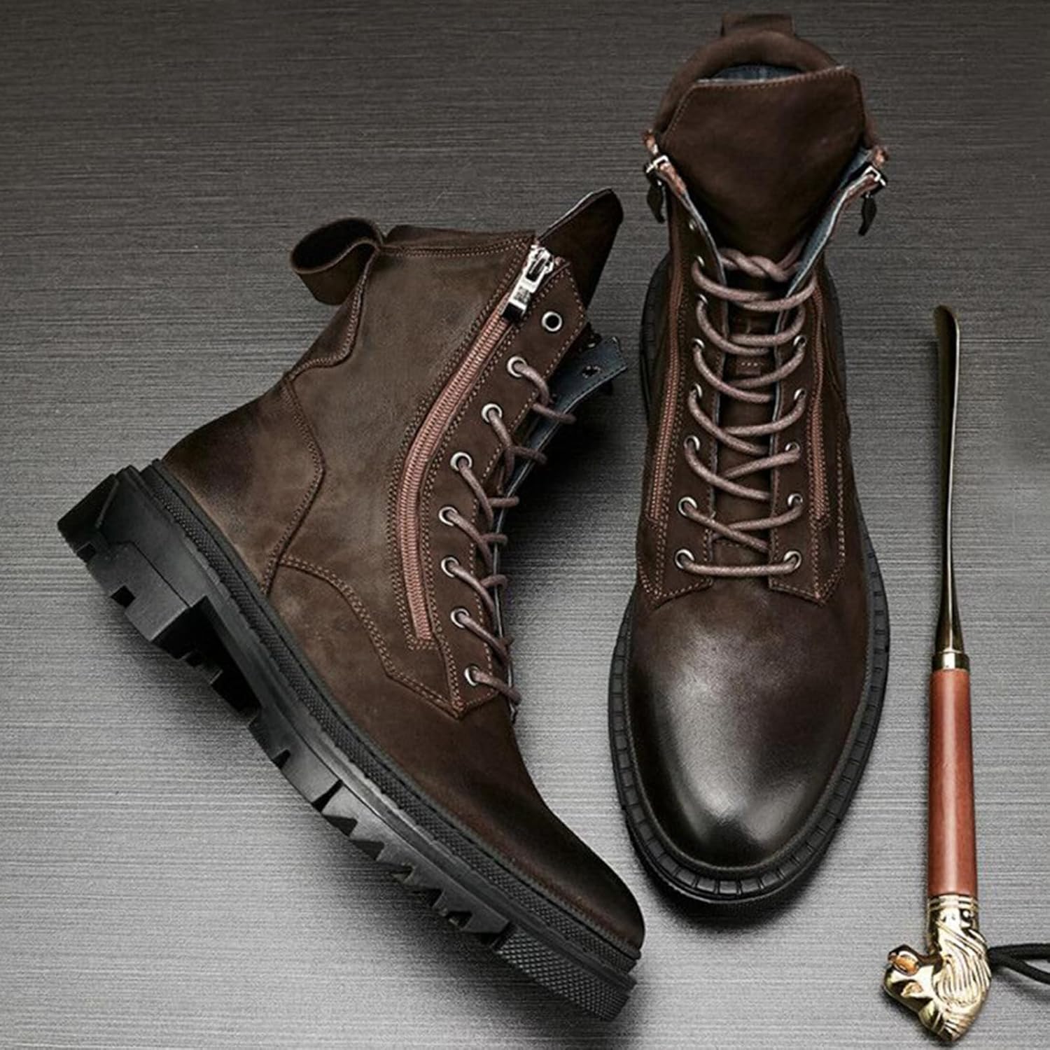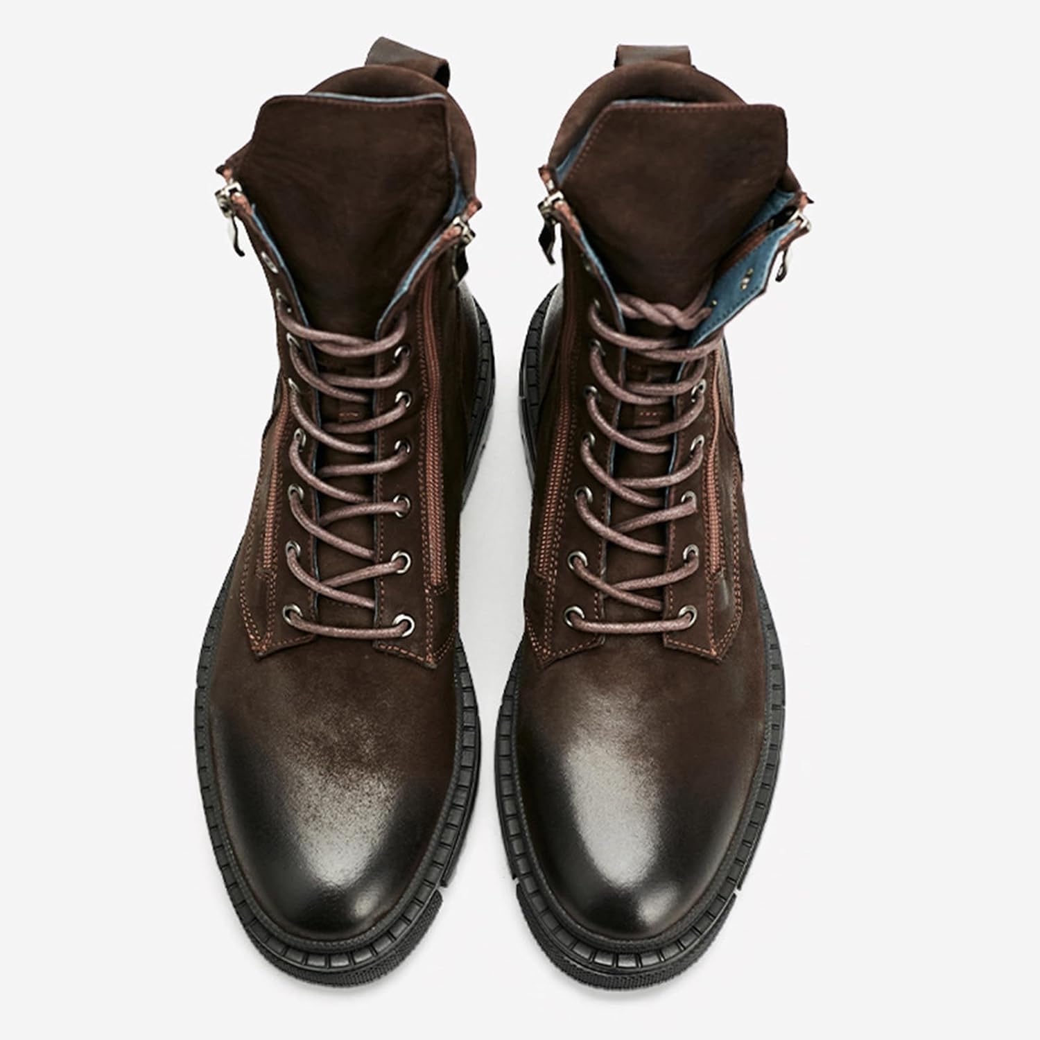 MILDSEVEN Genuine Leather Lace Up Ankle Boots for Men, Fashion British Style Short Boots, Trendy Motorcycle Boots for Parties, Fashion Show And Banquet