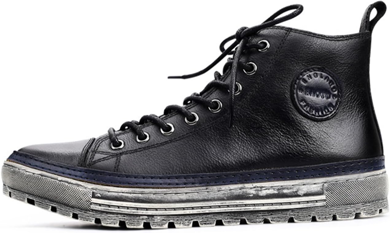 MILDSEVEN Retro British Style Short Boots for Men, Lace Up Trendy Real Leather Ankle Boots Fashion Casual Shoes for Parties, Fashion Show And Banquet