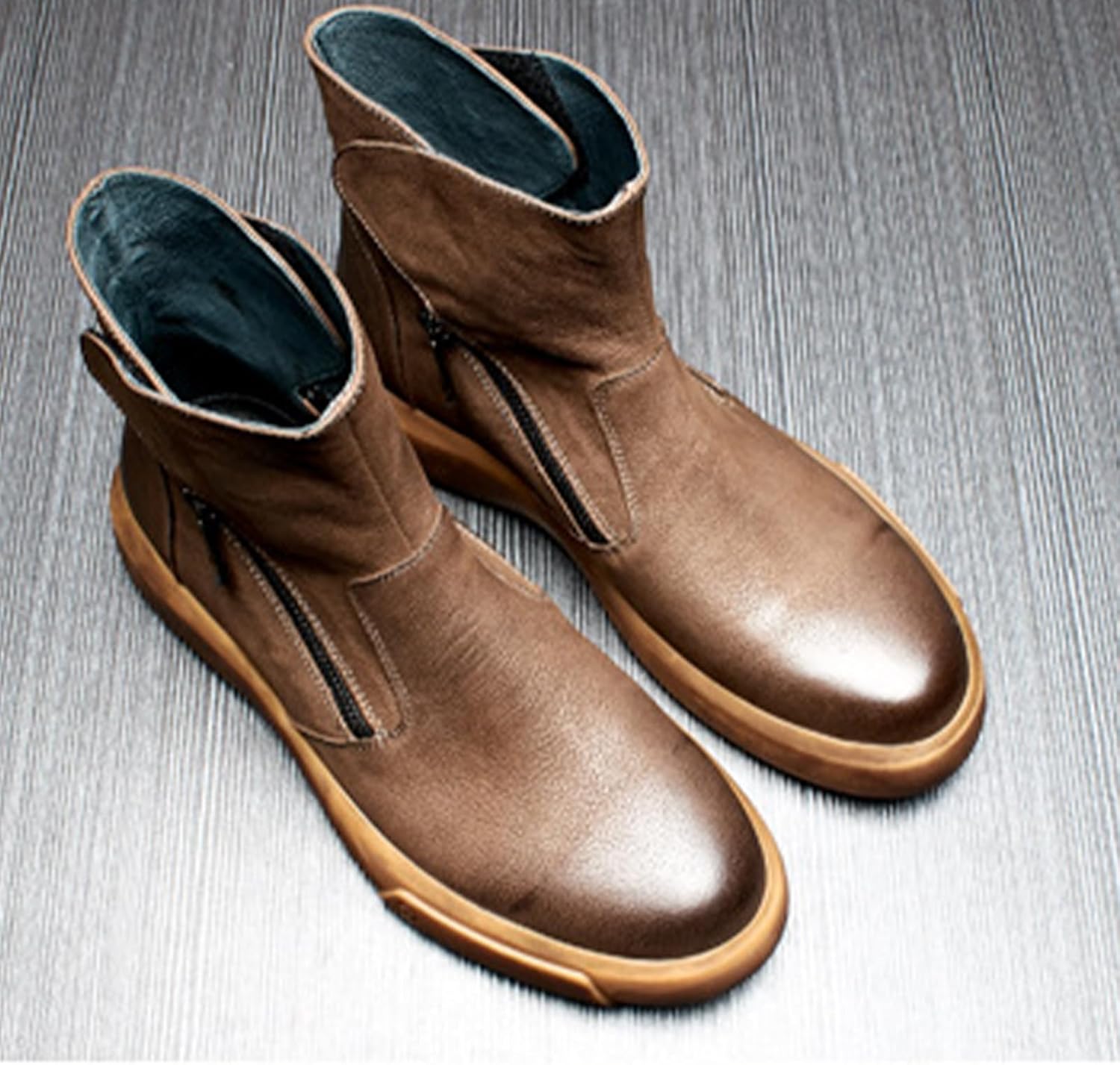 MILDSEVEN Retro Genuine Leather Slip on Ankle Boots for Men, Fashion Short Boots with Side Zipper, Trendy British Style Chelsea Boots for Parties, Fashion Show And Banquet