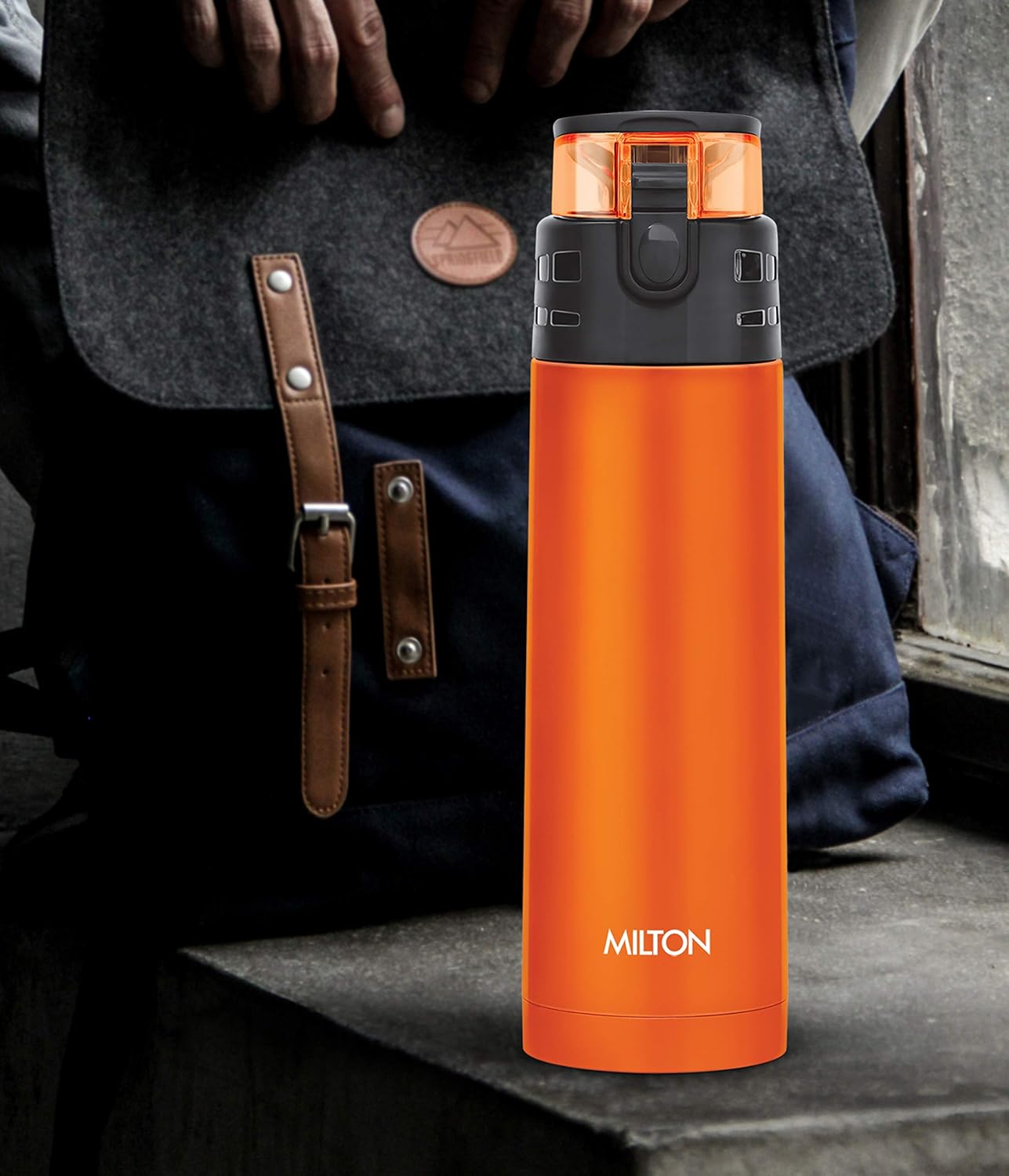 MILTON Atlantis 400 Thermosteel Hot and Cold Water Bottle, 1 Piece, 350 ml, Orange | Leak Proof | Easy to Carry | Office Bottle | Hiking | Trekking | Travel Bottle | Gym | Home | Kitchen Bottle