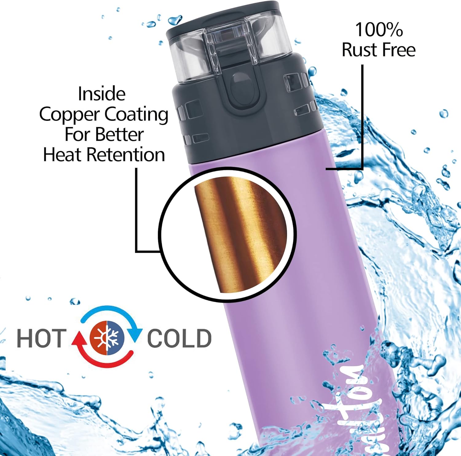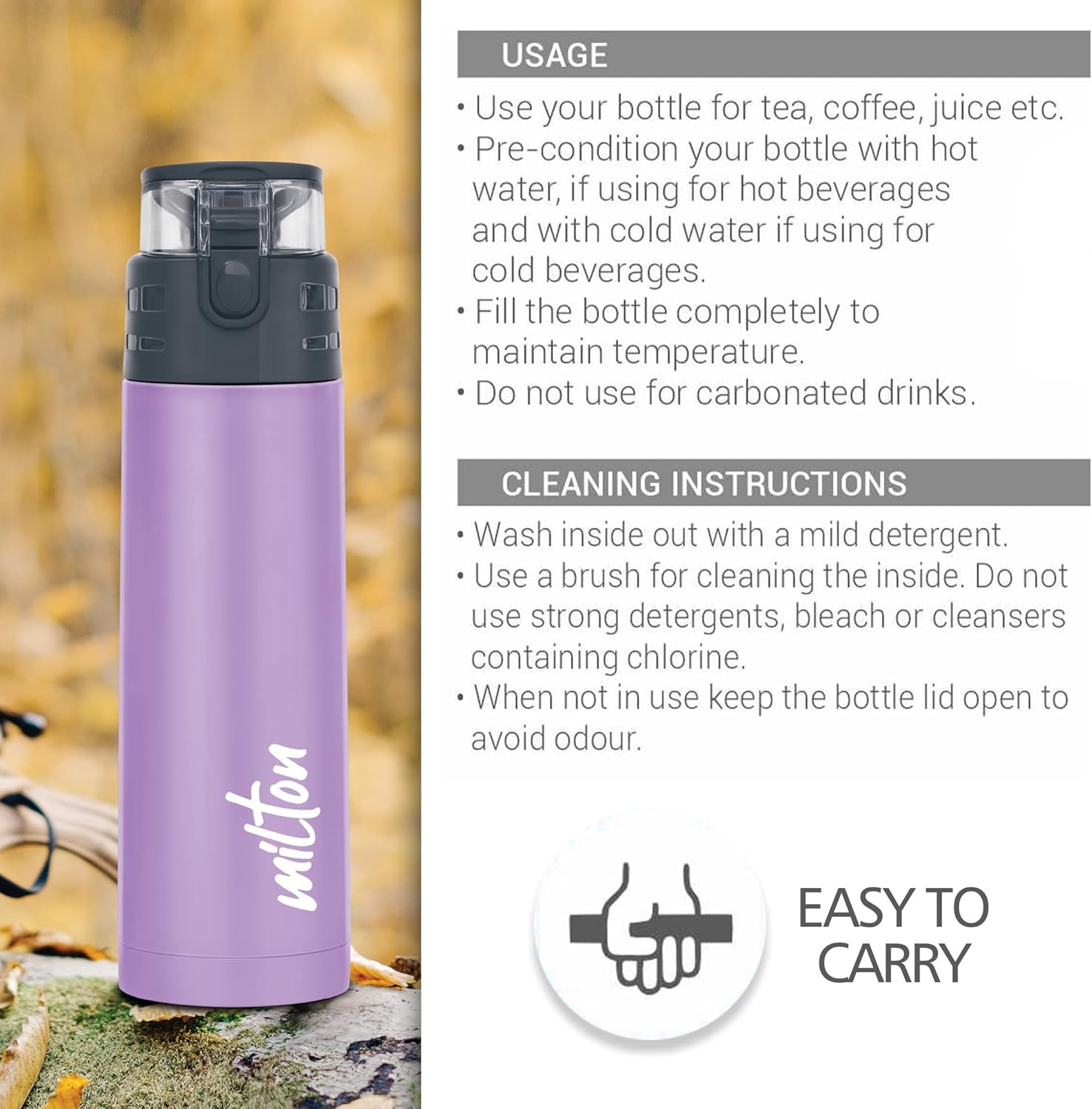 Milton Atlantis 900 Thermosteel Insulated Water Bottle, 750 ml, Purple | Hot and Cold | Leak Proof | Office Bottle | Sports | Home | Kitchen | Hiking | Treking | Travel | Easy to Carry | Rust Proof