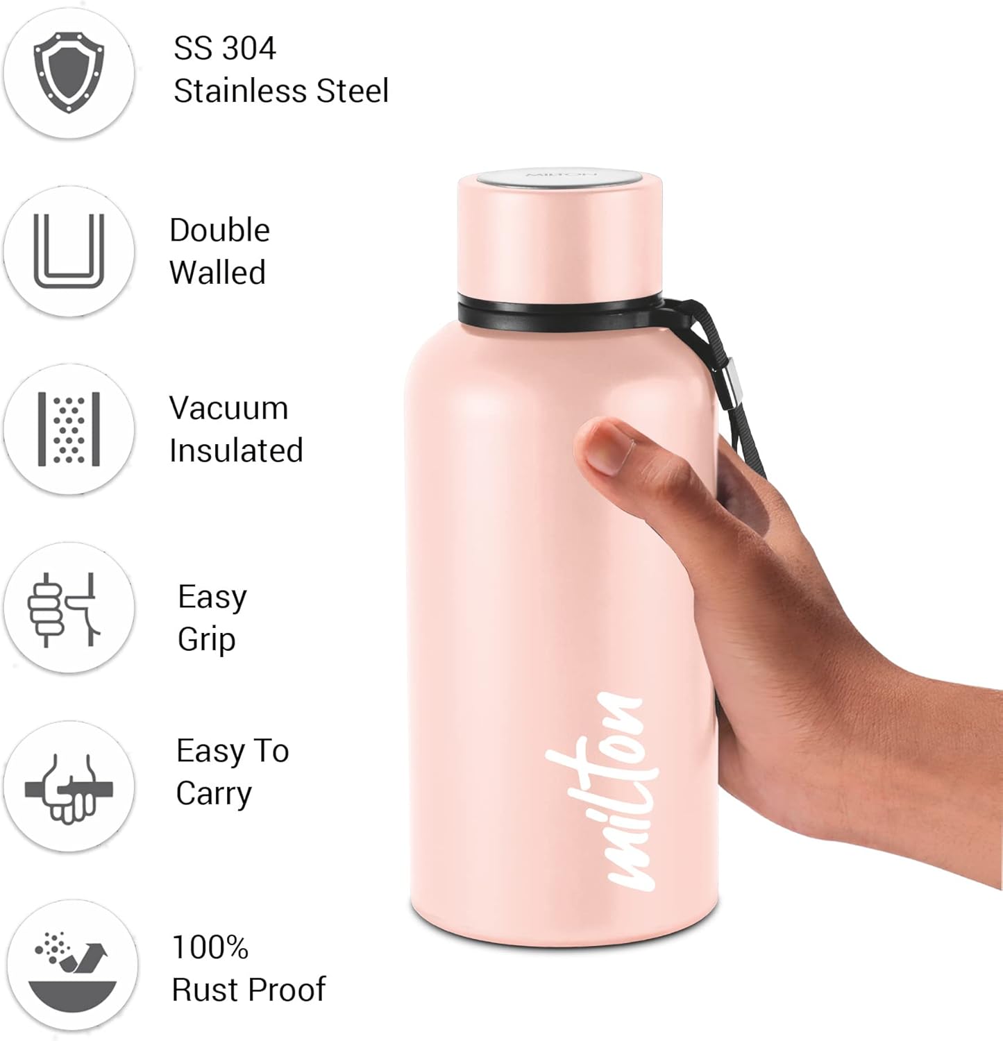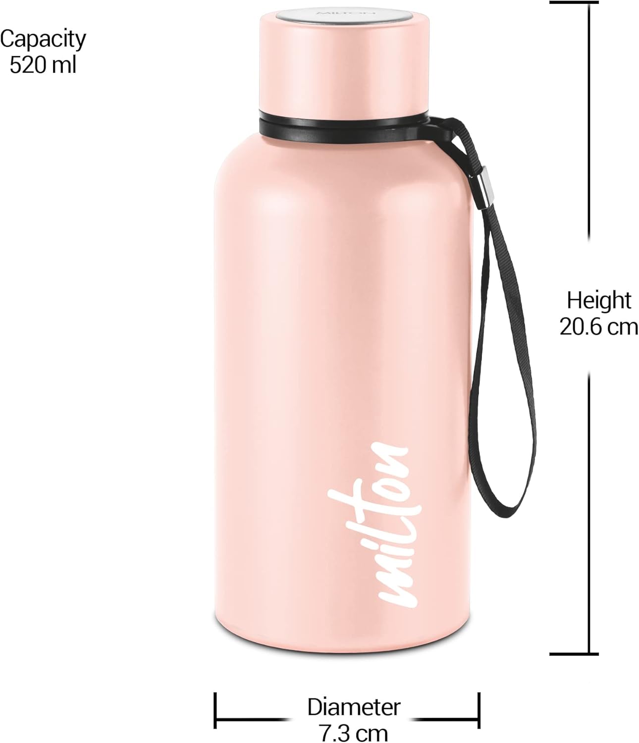Milton Aura 500 Thermosteel Bottle, 520 ml, Beige | 24 Hours Hot and Cold | Easy to Carry | Rust Proof | Leak Proof | Tea | Coffee | Office| Gym | Home | Kitchen | Hiking | Trekking | Travel Bottle
