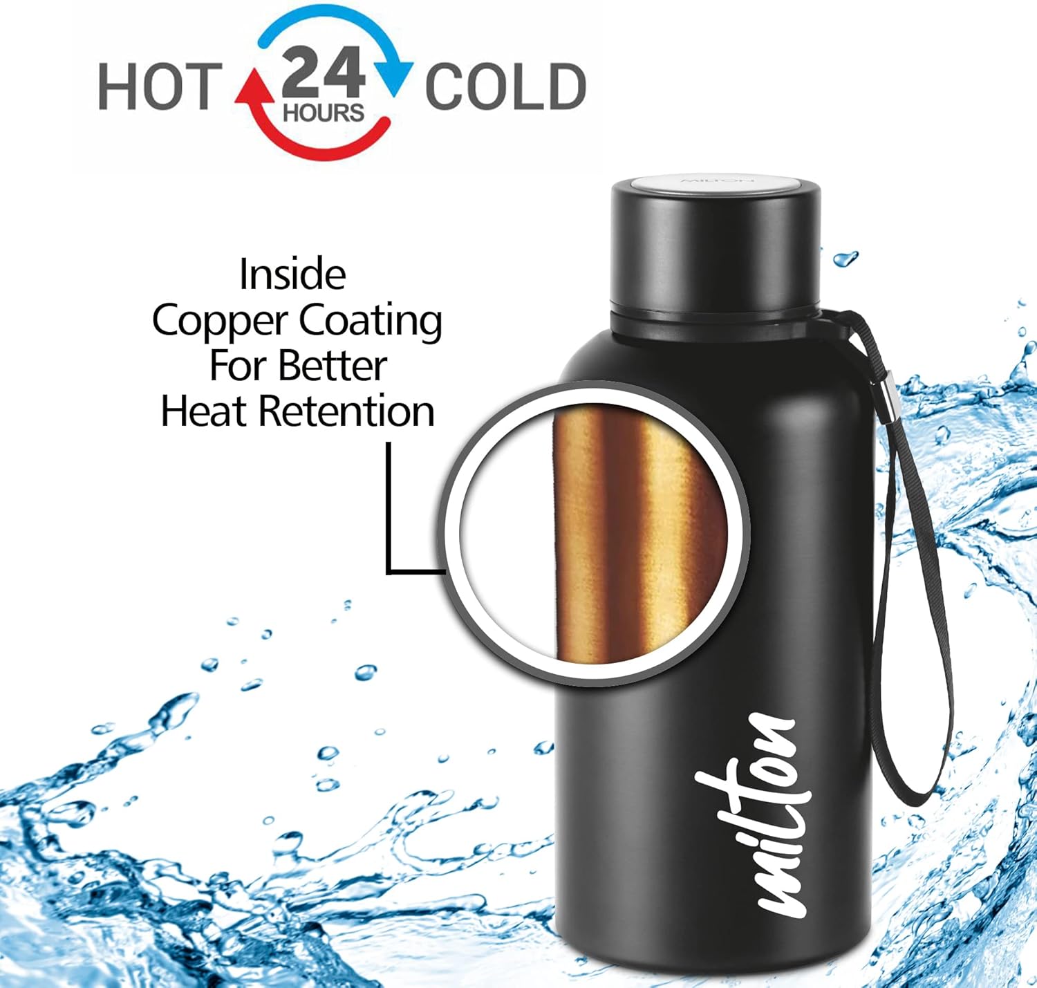 Milton Aura 500 Thermosteel Bottle, 520 ml, Black | 24 Hours Hot and Cold | Easy to Carry | Rust Proof | Leak Proof | Tea | Coffee | Office| Gym | Home | Kitchen | Hiking | Trekking | Travel Bottle