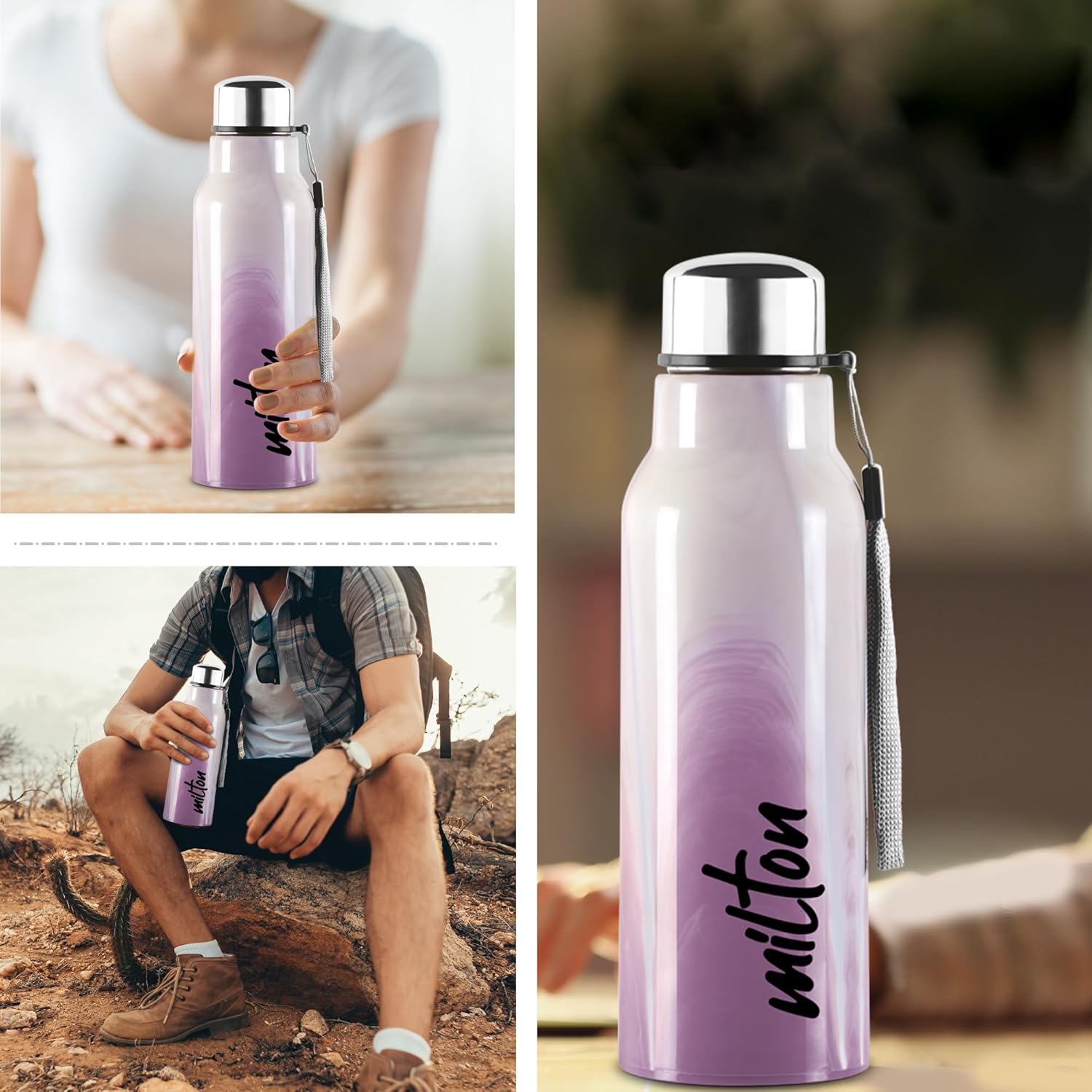 Milton’s Steel Marble water bottle is designed especially for young kids with an insulated stainless steel interior to keep their drinks hot or cold for hours. Use for storing hot water up to 40°C temperature. Filling the drink to full capacity ensures maximum temperature retention. This Bottle is unique in shape, it has leak proof technology, which make this bottle easy to carry at school, office, gym, hiking, treking, travelling. When it comes to drinking fresh and clean water during travelling, it is best way to carry water from home to avoid any contamination. The best way to remind yourself to drink water is to carry a bottle with you. It not only keeps the water clean but also retains temperature for hours. Hence carry hot water for a day’s journey during winter and simple cold water during summer to refresh yourself while travelling. This Product Is Under 1 Year Warranty From The Date Of Retail Purchase Against Any Manufacturing Defects In Material And Workmanship. The Warranty Does Not Cover Damages Resulting From Accidents, Mishandling Or Tampering With The Mechanism. Warranty Valid Against Producing Original Bill Endorsed By Seller.