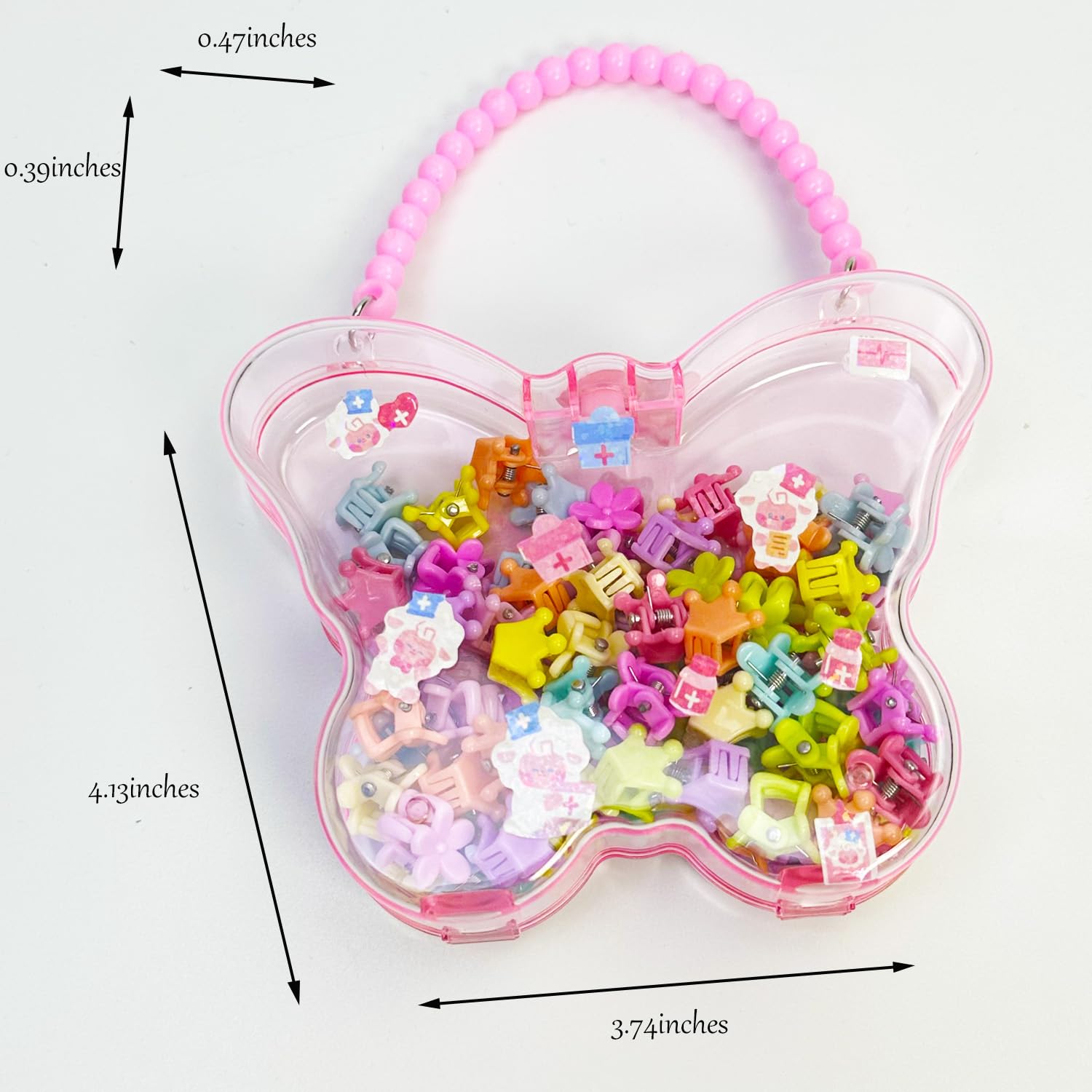 Mini Hair Clips Collection, a delightful set featuring 100 colorful hairpins. Each clip is meticulously designed with vibrant colors and unique shapes, including adorable flowers, dazzling crowns, and lively rabbits, all guaranteed to captivate little ones’ hearts. Perfect for infants and children, these hairpins securely hold even the finest hair, adding a touch of cuteness to every hairstyle. Their mini size ensures they blend in seamlessly with daily wear. For effortless storage and portability, we’ve included a stylish handheld box. This box not only looks great but is also spacious enough to hold all the hairpins. Plus, we’ve added two charming stickers that you can use to personalize your box, making it truly one-of-a-kind. More than just a set of hairpins, this Mini Hair Clips Collection is a token of love. It brightens up your baby’s hair while showcasing your endless care and affection. Grab it now and let this hairpin set bring endless joy and surprises to you and your little one!