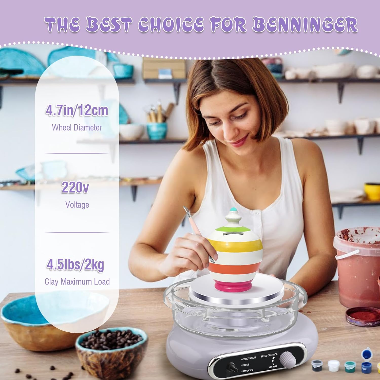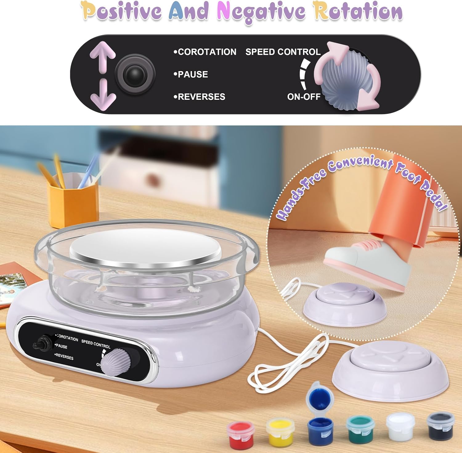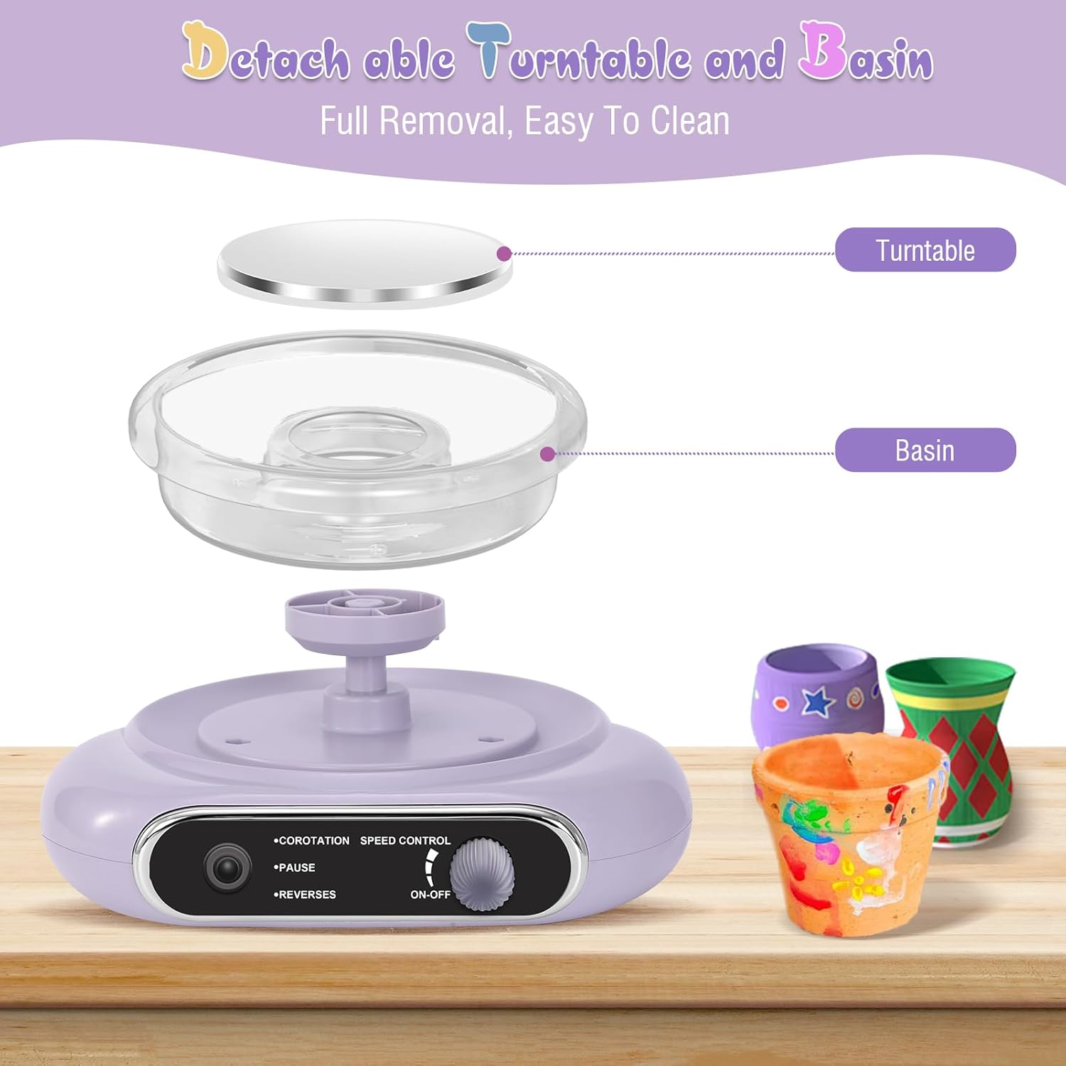 Mini Pottery Wheel Kit, 4.7-Inch Mini Pottery Wheel Machine, Pottery Wheel for Beginners, Including 16pcs Clay Tools & 6 Colors Paint, Art Craft DIY, 110/220V, 0-200R/MIN (Purple)