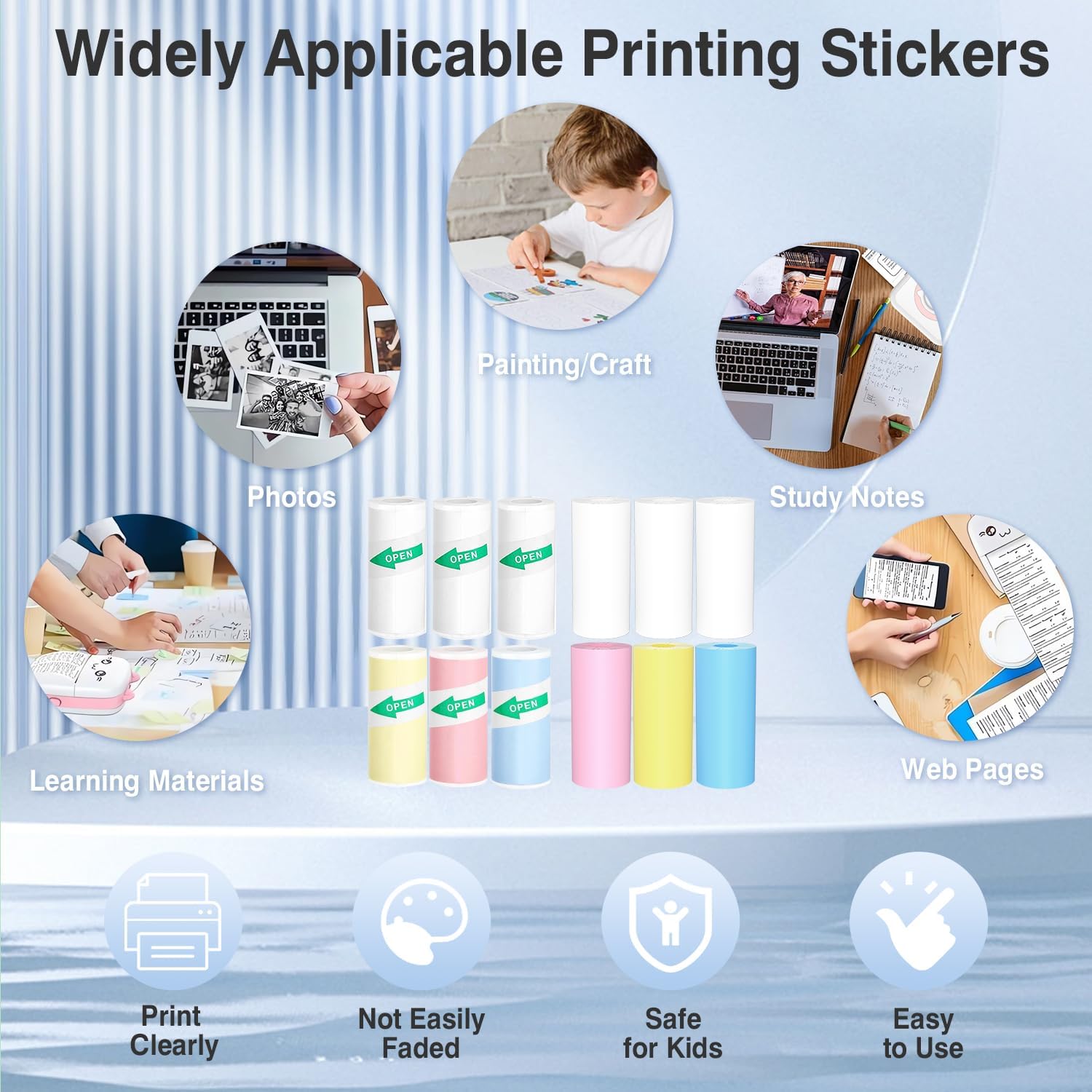 Mini Printer Paper Thermal Sticker printer Paper Mini Thermal Printer Paper Photo Printer Labels kids camera paper 15 roll Suitable for Various Inkless Sticker Printers