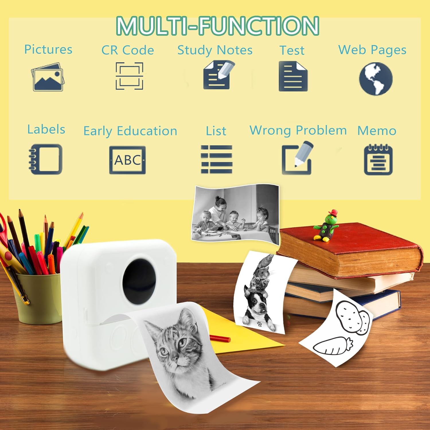 【Multi-Function Printer】Our mini portable printer can print photos, labels, QR codes, memos, study notes, etc., also allows children to diy bookmark labels, etc., there are also a variety of customized templates within the APP, allowing children to use their imagination, the sticker printer is compatible with Android and ios.