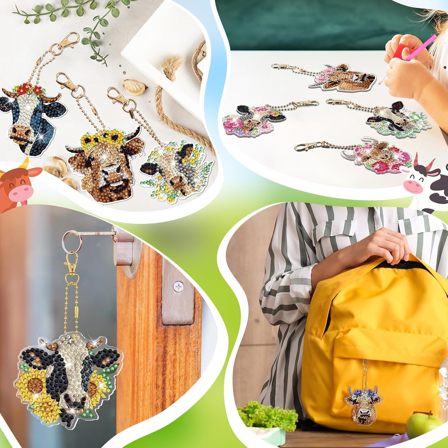 Spring Blossom Theme: diamond art keychain kits beautifully encapsulate the spirit of the spring season; The vibrant cow design is an expression of joy, renewal, and hope, perfectly complementing your springtime activities; This cow themed DIY project is not just an artistic adventure, but a mesmerizing pleasure not to be missed