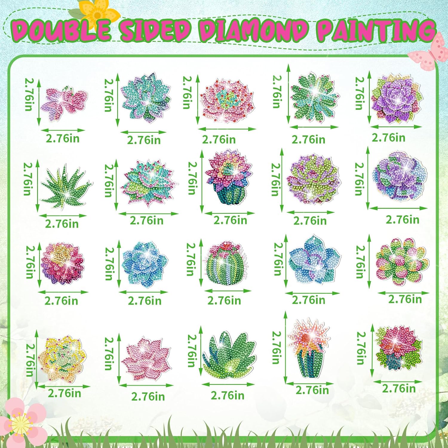 Misdary 20 Set Spring Flowers Diamond Painting Keychain DIY Diamond Painting Kits for Adults, Diamond DIY Ornament Kit Potted Flower Diamond Art for Craft Home Party Decoration (Succulent)