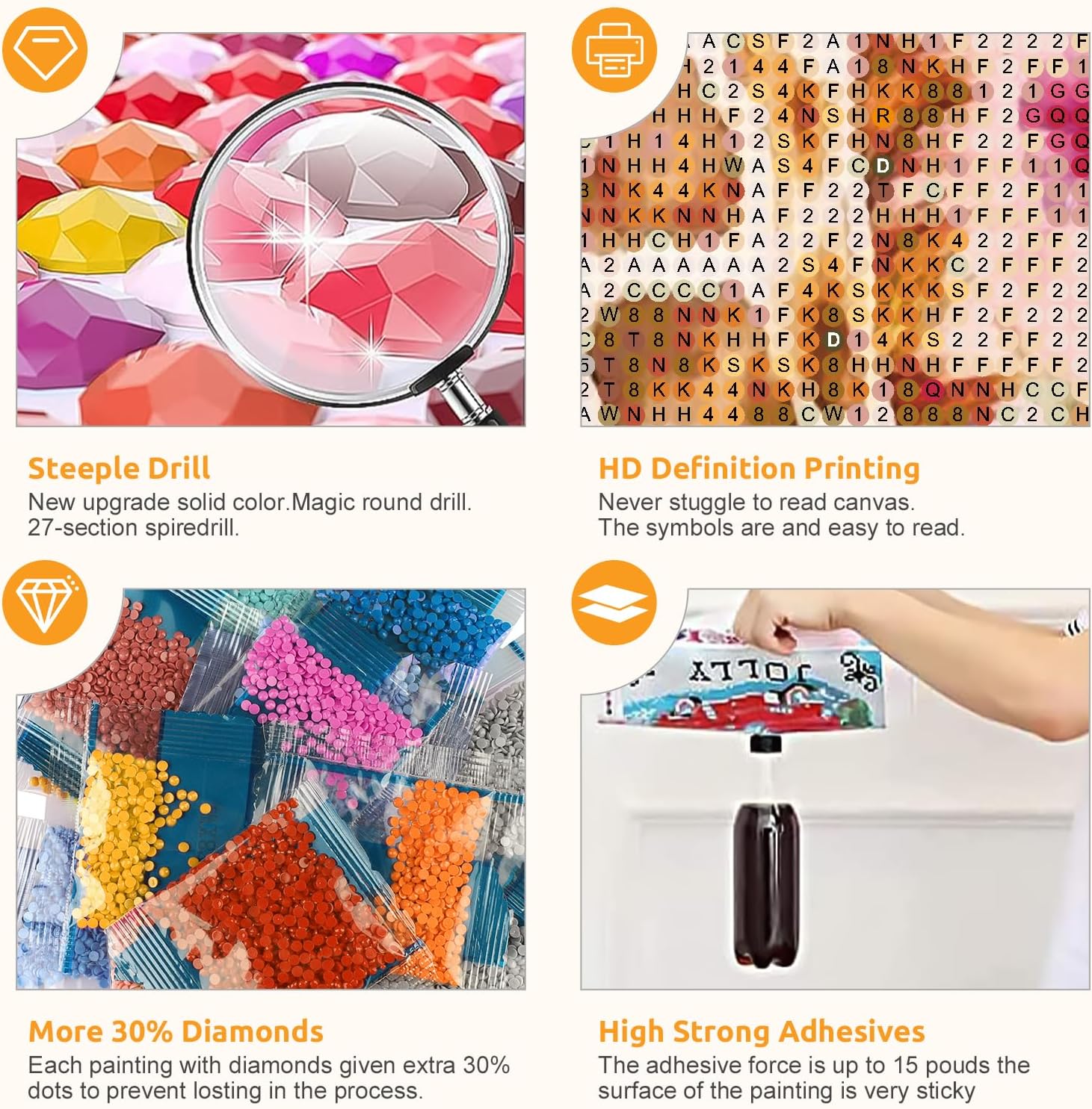 💎 Glittering Diamond Art Painting Kits: Each diamond has 26 facets, compared with the conventional 20 facets, it is more dazzling and sparkling under the light, and the picture looks more textured and three-dimensional. We add 30% diamonds to each package to ensure there are enough diamonds to complete the diamond painting.