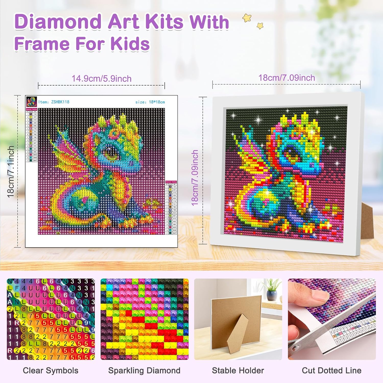 💎【Diamond Art Kits with Frame】7.1 x 7.1 inch Canvas size, simple and cute pattern, clear symbols and numbers, no painting skills required. Kids and children just need to follow the numbers on the canvas and then they can create a great painting by themselves.