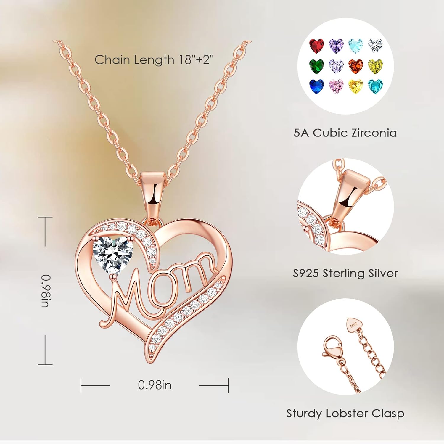 Mom’s Jewelry Gifts, Birthstone Necklace for Women, Heart Pendant Rose Gold Necklaces for Wife Mom Necklace for Mother’ Day, Valentine’s Day, Birthday, Christmas, Anniversary Necklace for Her