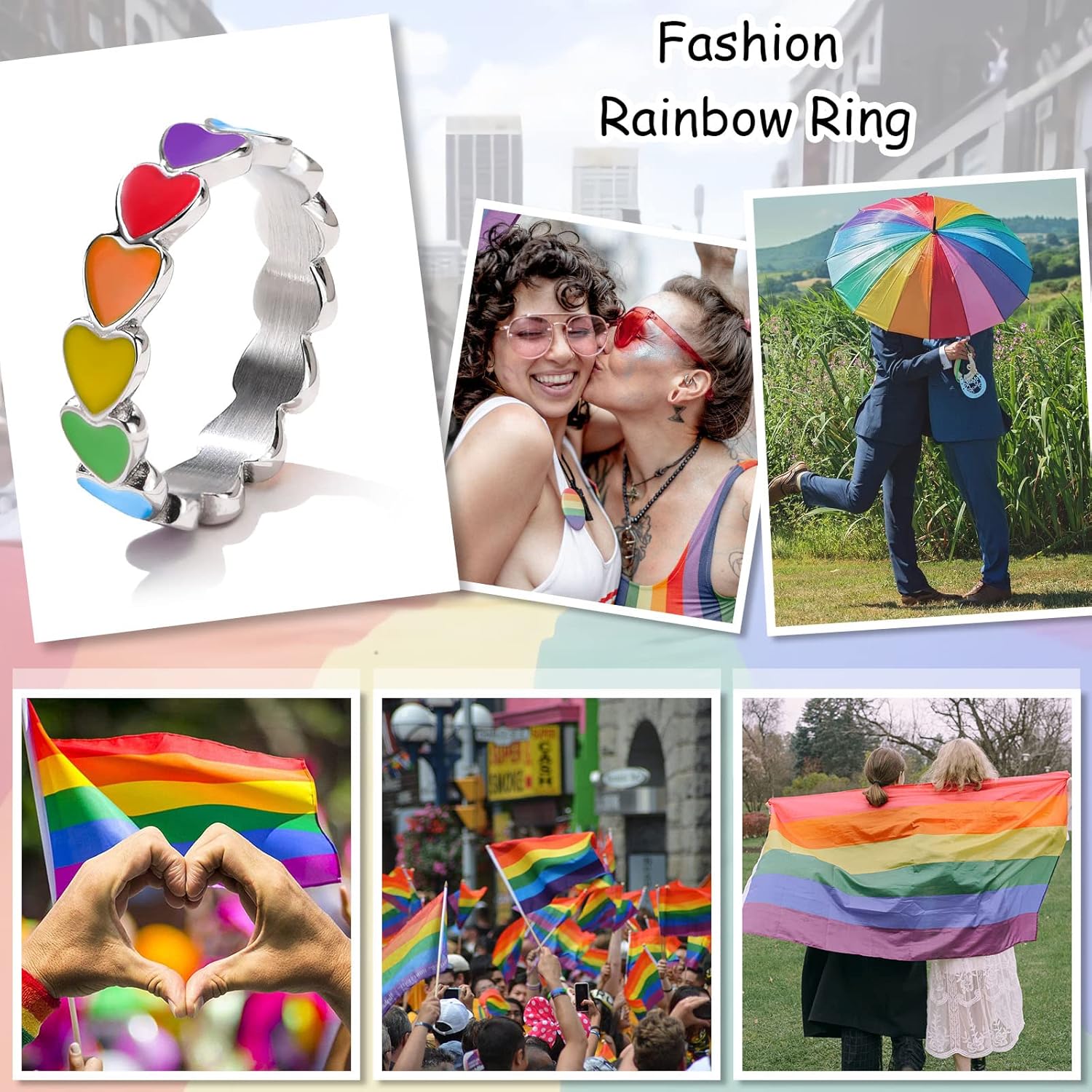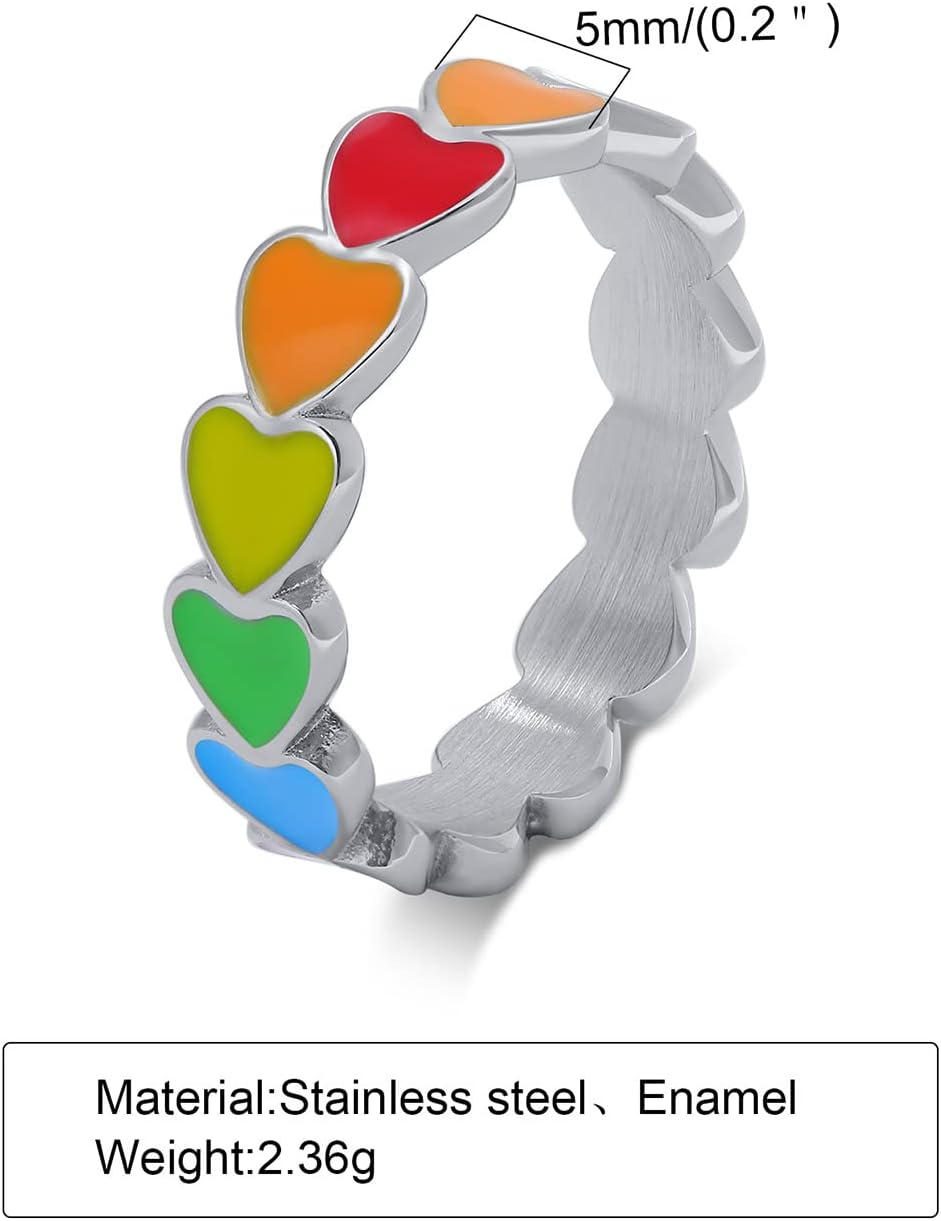 MPRAINBOW Enamel Rainbow LGBT Pride Ring 5mm Star Heart to Heart Rainbow Lesbian & Gay Rings, Stainless Steel Love Heart LGBTQ Pride Rings Jewelry