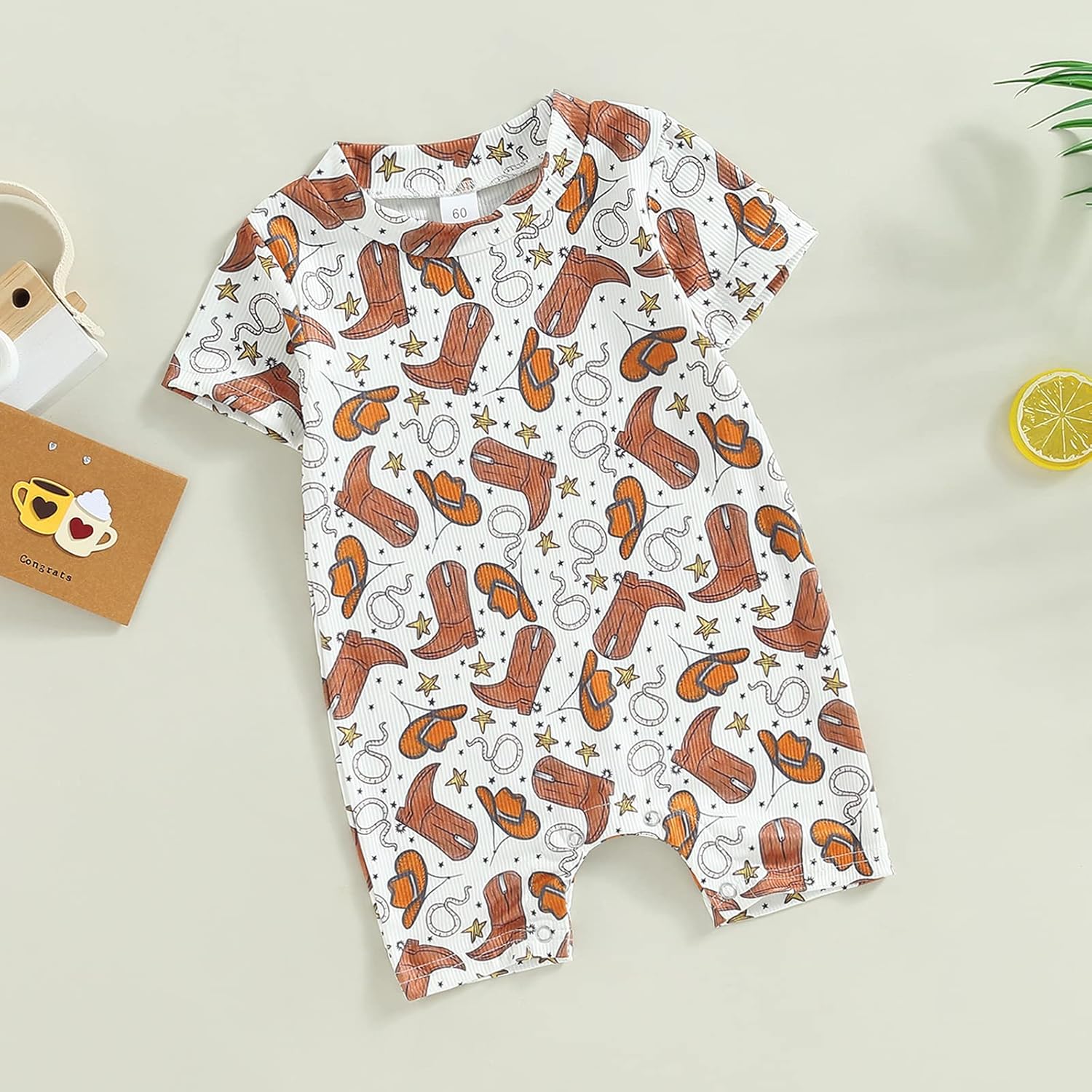 Muasaaluxi Western Baby Girl Boy Clothes Short Sleeve Cow Print Romper One Piece Bodysuit Shorts Summer Outfit