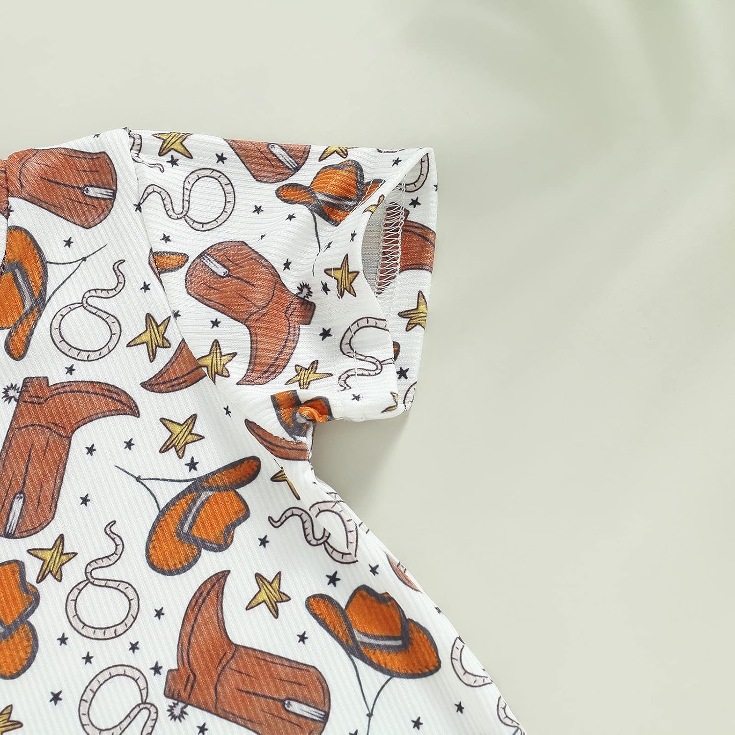 Muasaaluxi Western Baby Girl Boy Clothes Short Sleeve Cow Print Romper One Piece Bodysuit Shorts Summer Outfit