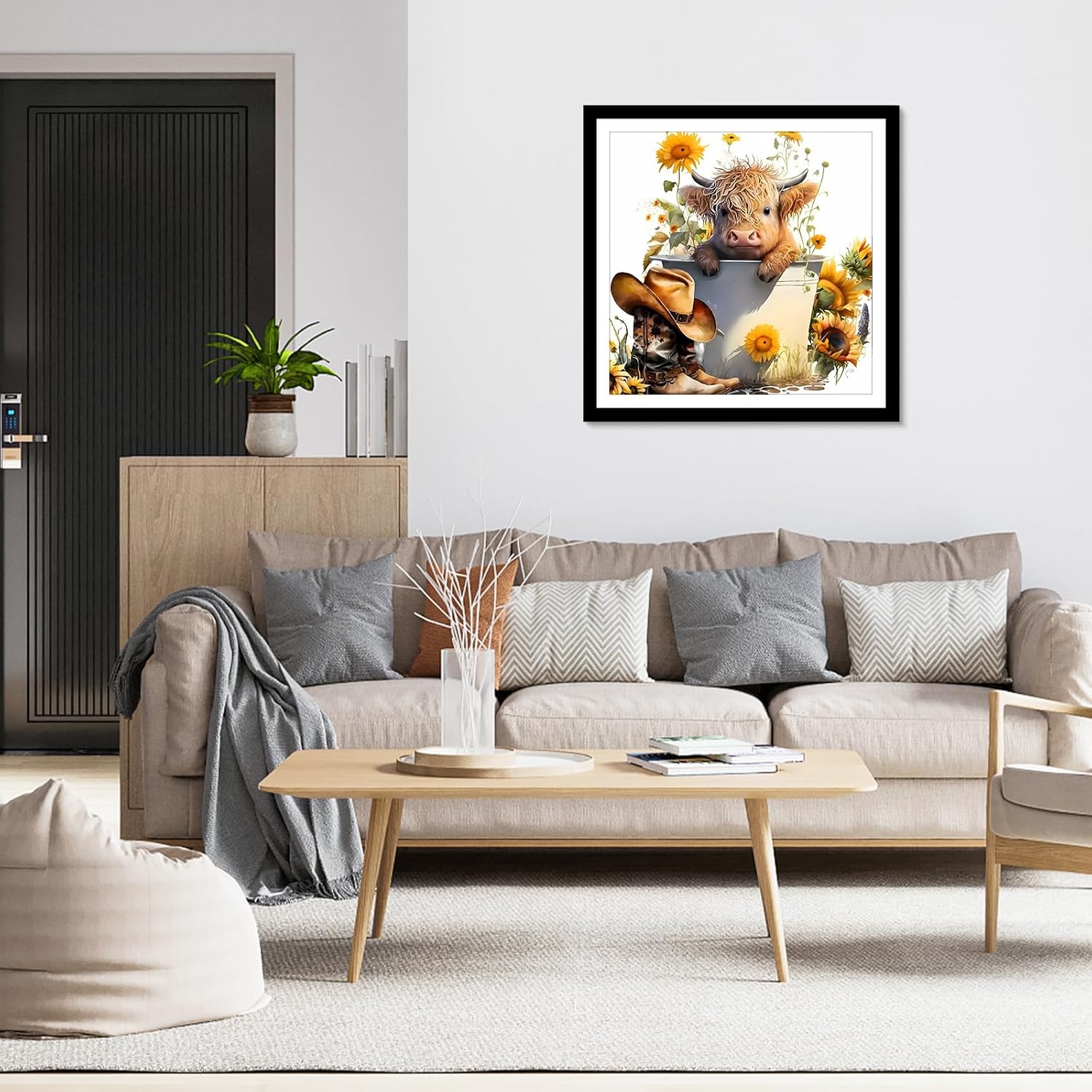 MXJSUA 5D Highland Cow Diamond Art Painting Kits for Adults, DIY Diamond Art Kits for Beginners Gem Art Craft Kits Home Wall Decor Gift 12×12 Inch