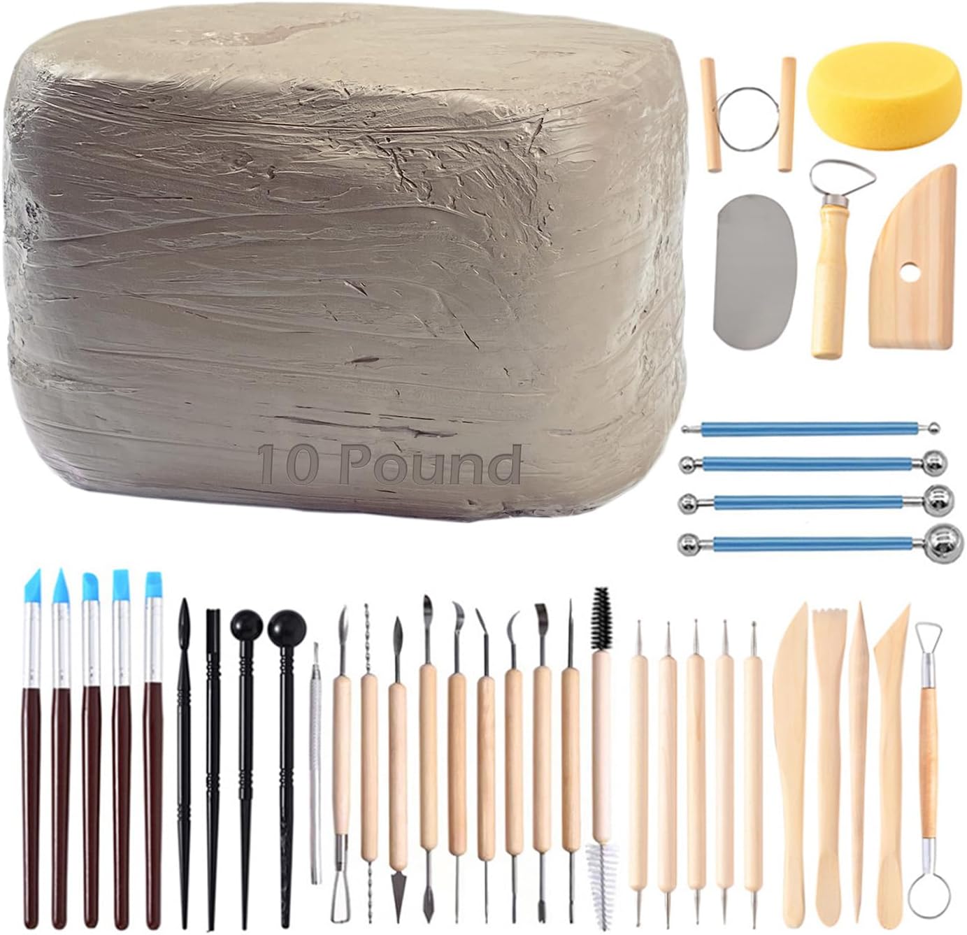 Natural Air-Dry Modeling Clay – 10LBs with 40 Pcs Pottery Sculpting Tool Set, All-Purpose Clay (Gray)