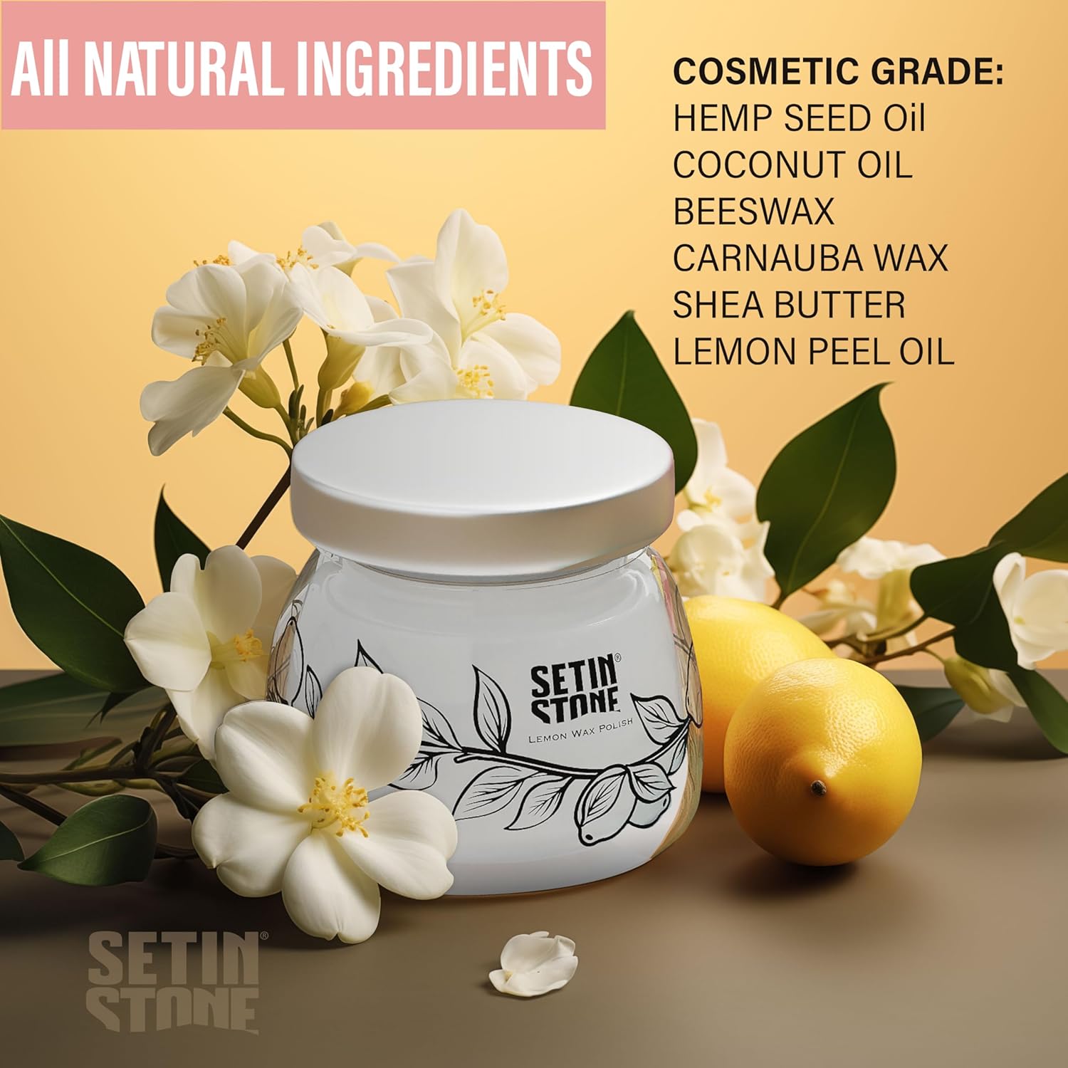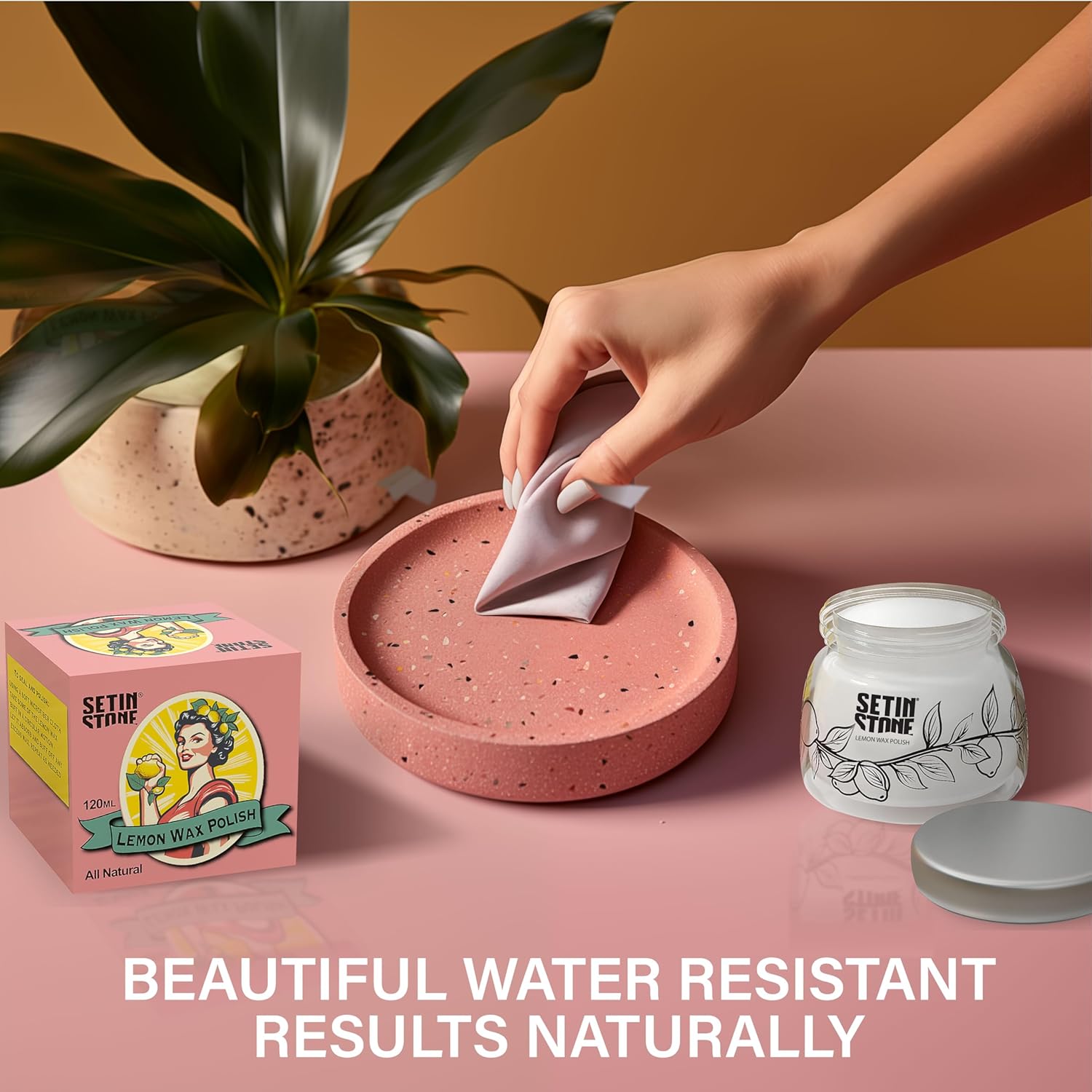 Natural Stone Wax Polish – Seal and Waterproof SETINSTONE, Concrete, Gypsum Crafts with Carnauba and Beeswax, for Eco Resin Casting Kits and Acrylic Resin Castings, Lemon Scent, 4oz