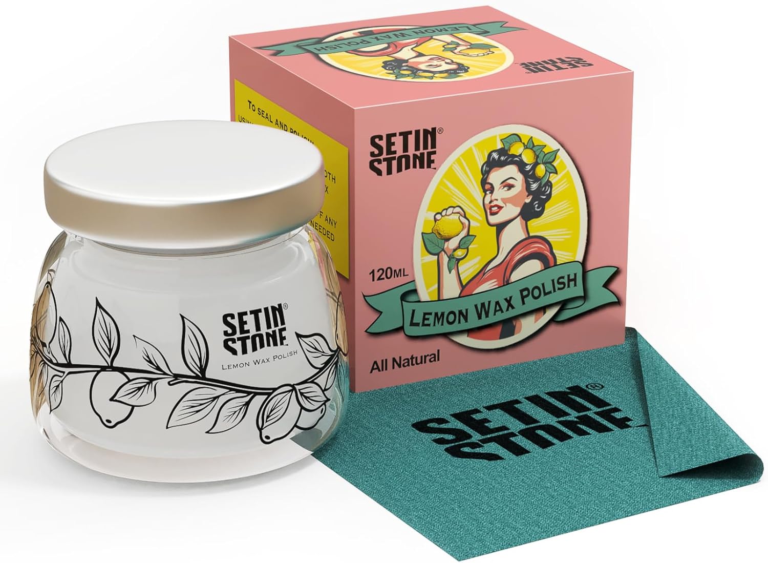 Natural Stone Wax Polish – Seal and Waterproof SETINSTONE, Concrete, Gypsum Crafts with Carnauba and Beeswax, for Eco Resin Casting Kits and Acrylic Resin Castings, Lemon Scent, 4oz