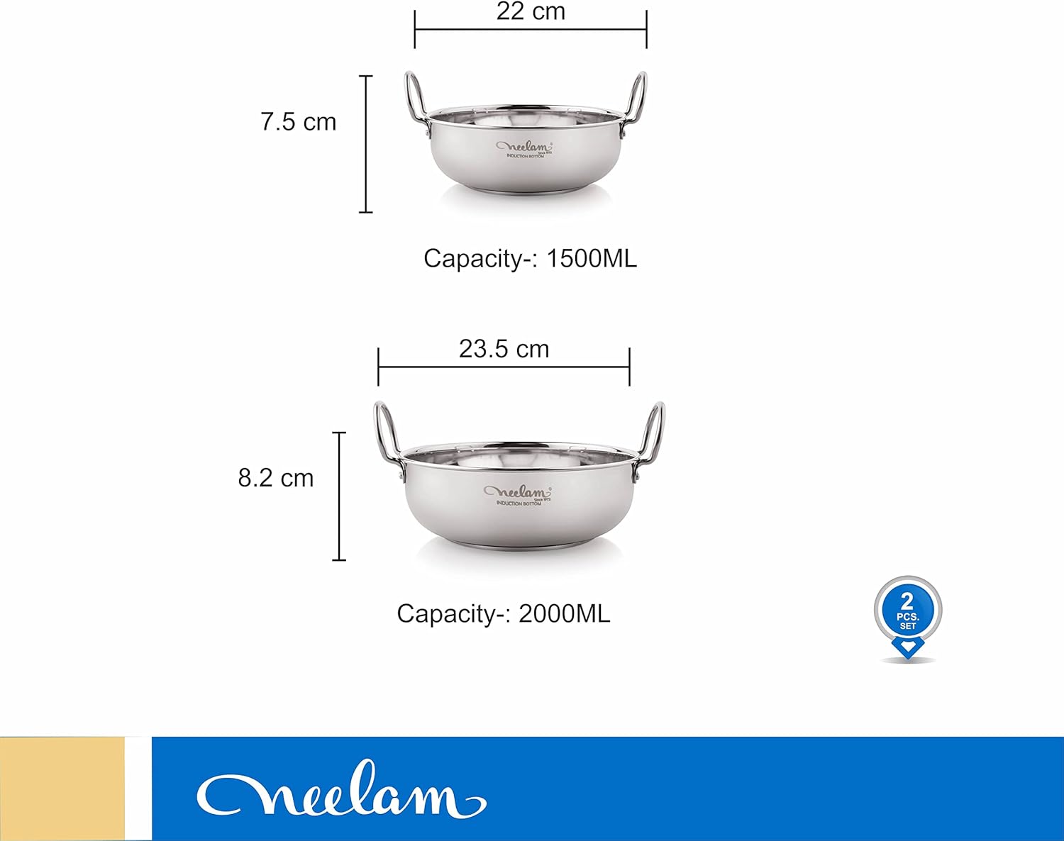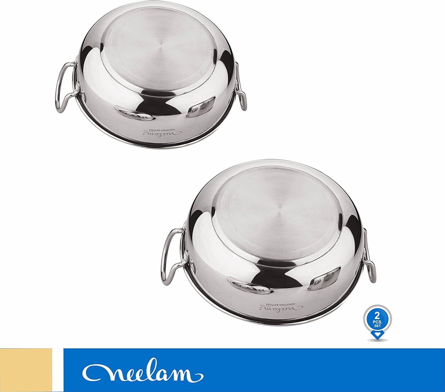 Neelam Stainless Steel Induction Bottom Deep Fry, Kadai Set of 2 Pcs