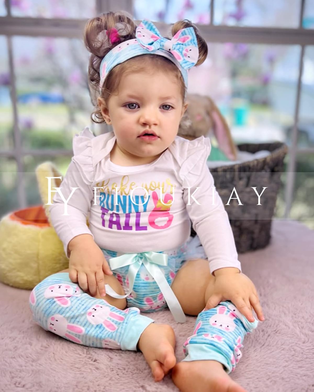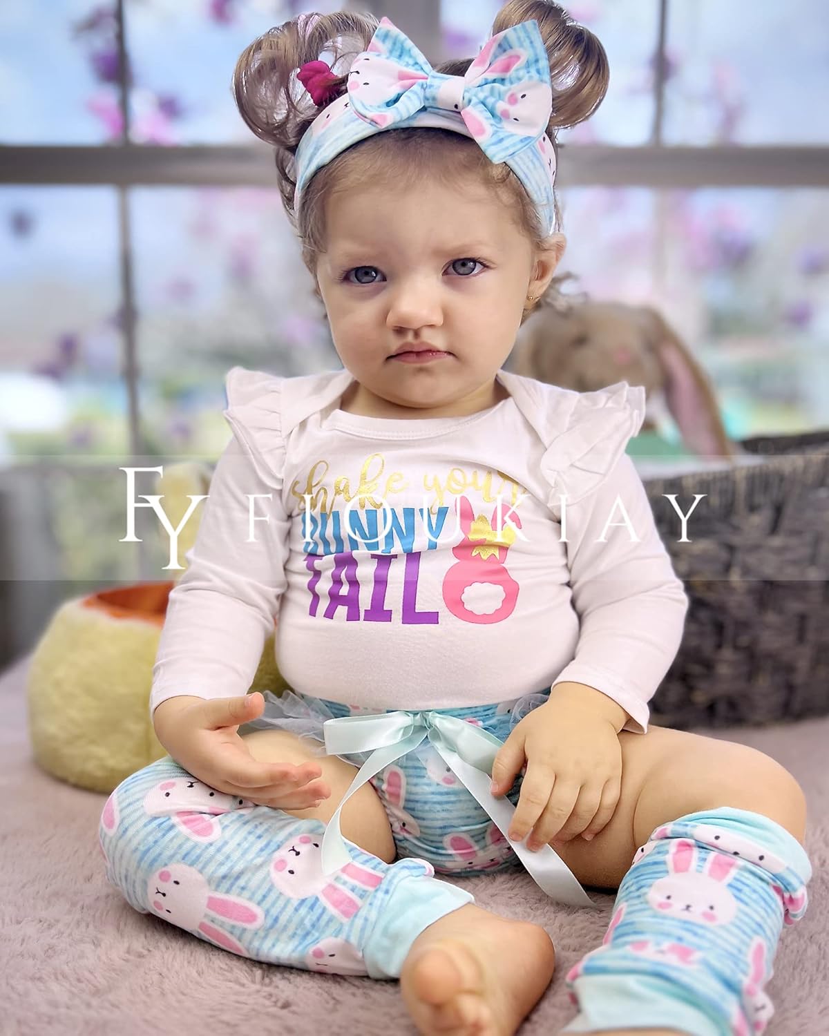 Newborn Baby Girls Easter Day Clothes Outfits Infant 4pcs Easter Bunny Bodysuit Romper Tutu Shorts Sets