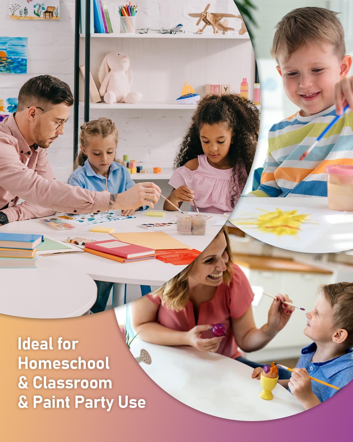 2.WASHABLE PAINTS FOR KIDS: These water based paints ensures quick and effortless cleanup from skin, clothing, and surfaces,make these paint ideal for home & school art projects, birthday parties, and everyday arts and crafts