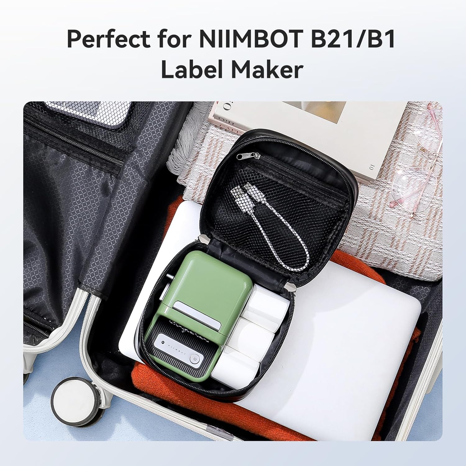 NIIMBOT Case Compatible with B1/B21/B3S Label Maker, Portable Carrying Bag Holder for Printer, Refill Labels, USB Cables (Case Only-Black)