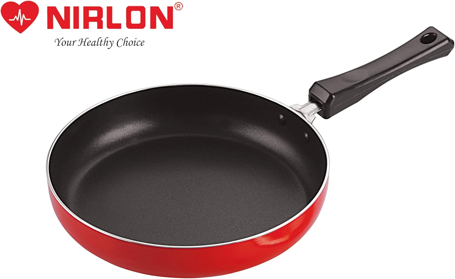 Nirlon Fry Pan is designed to deliver premium quality and great value to you. This Gas-Stove compatible fry pan is strong & long-lasting due to the 3mm thick body. Use the fry pan to cook delicious cutlets, uttappams, stir-fry and more. The rounded sides and added height ensure less spillage of food outside the pan. This fry pan is perfect for busy cooks who seek durable performance in the kitchen, every day. It is highly durable and scratch resistant.This Fry Pan is equipped with an ergonomically designed Bakelite handle that does not heat up during cooking. This cool touch sturdy handle helps you lift the hot fry pan without the use of mittens or a cloth. Fry Pan Handle safety, comfort and easy-handling. giving you the flexibility which you need. The thick gauge ensures even heat distribution & retention, enabling you to cook and serve delicious hot meals. This base also reduces the chances of overcooking and enables you to efficiently cook on low or medium heat, without wasting gas or Timing.