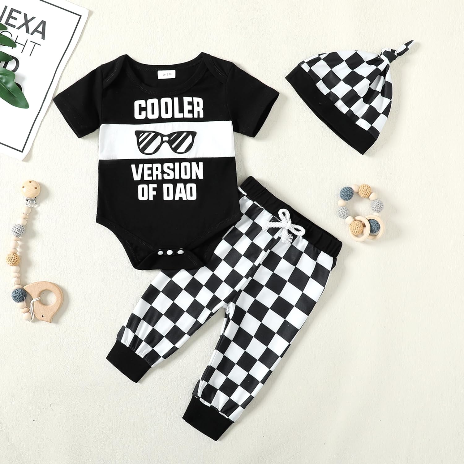 NZRVAWS Baby Boy Clothes Newborn Boy Outfit Infant Stripe Plaid Romper Long Pant Set Hat 3PC Clothing 0 3 6 9 12 Months