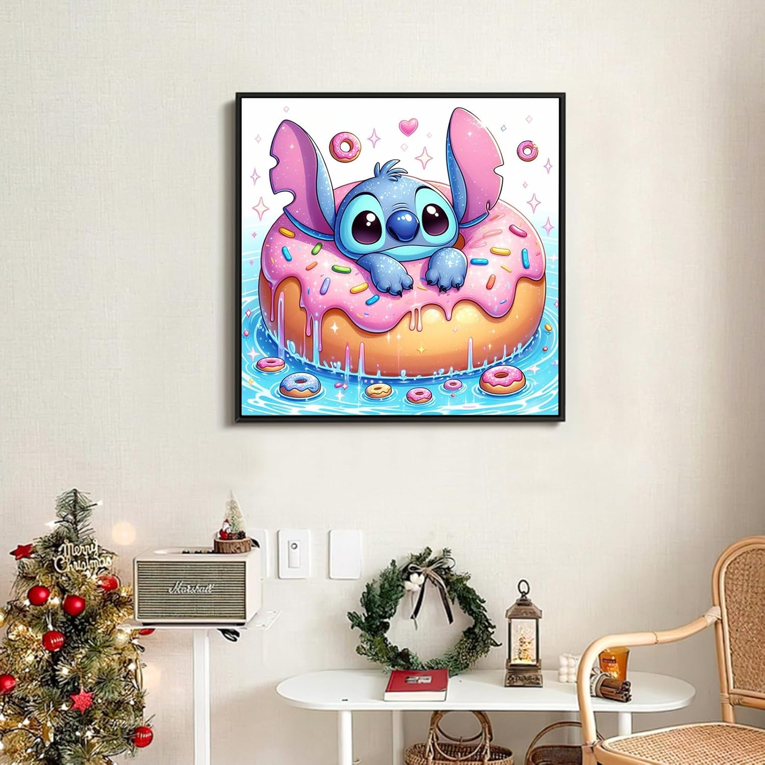 Okarina Stitch Diamond Art Kits for Adults Beginners – Stitch DIY 5D Cartoon Full Drill Round Diamond Gem Art Painting Crafts Kits for Home Wall Decor Gifts 12x12inch