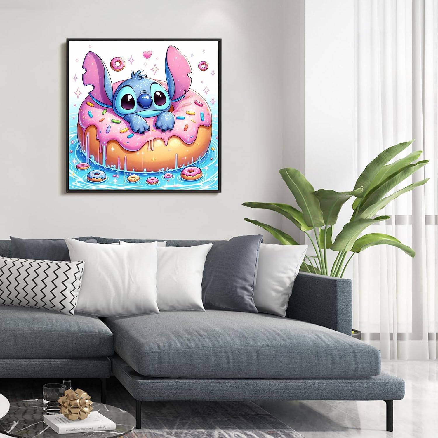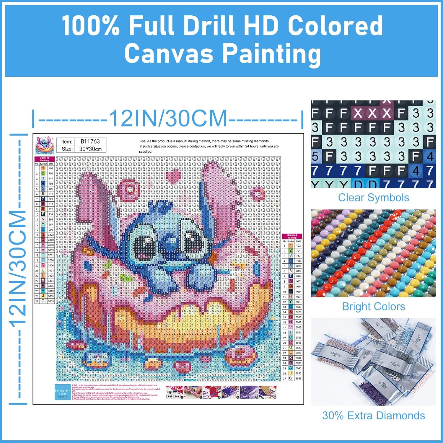 Okarina Stitch Diamond Art Kits for Adults Beginners – Stitch DIY 5D Cartoon Full Drill Round Diamond Gem Art Painting Crafts Kits for Home Wall Decor Gifts 12x12inch