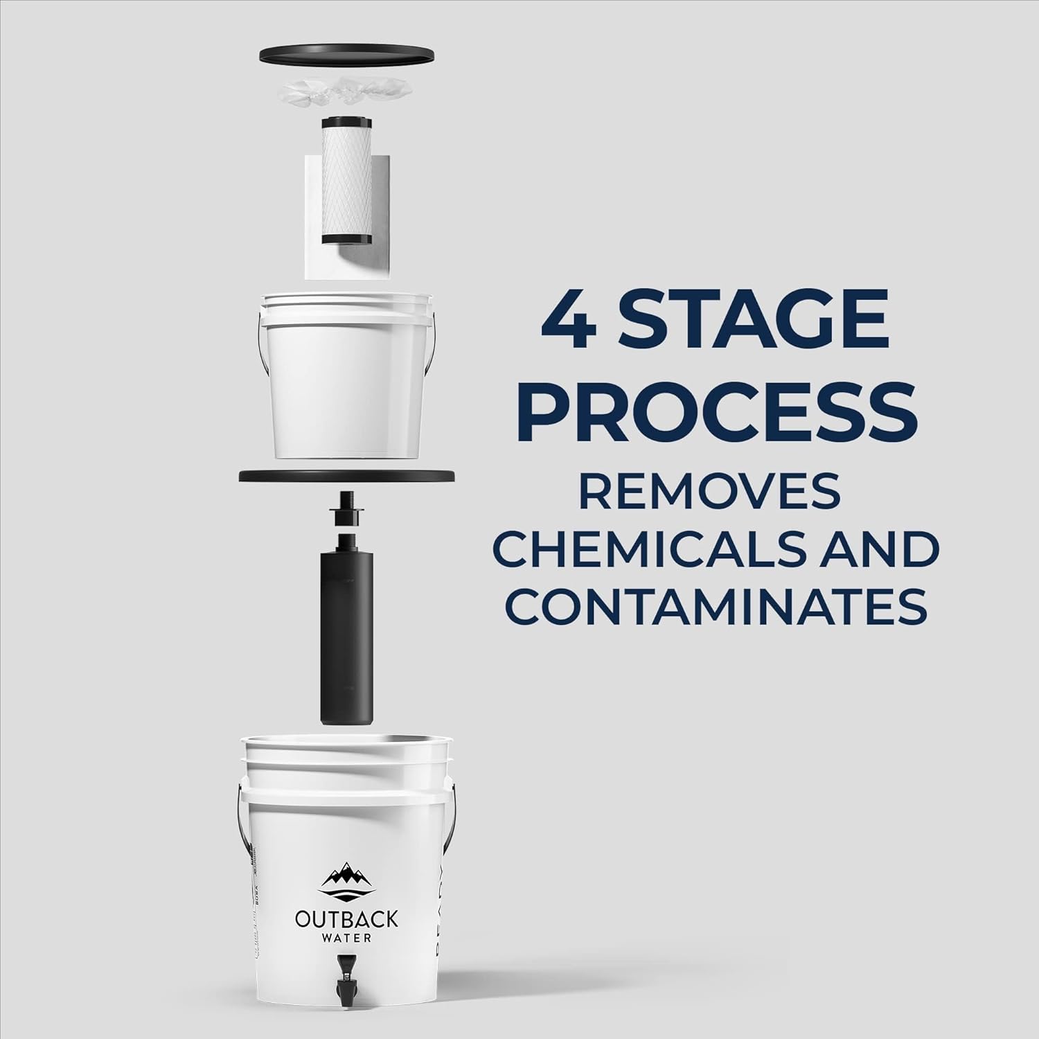 Outback Water Emergency Filtration System – 5 Gallon Bucket Water Filter – Gravity Powered, Portable, Purify up to 24 Gallons of Potable Drinking Water Per Day