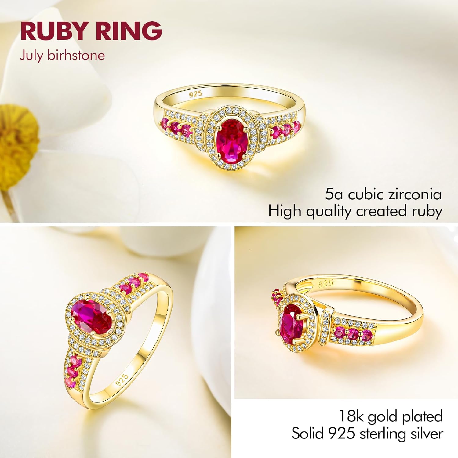 Oval Engagement Ring 925 Sterling Silver/Yellow Gold Created Gemstome Oval Cut Halo Birthstone Rings for Women Size 6-10 (with Gift Box)