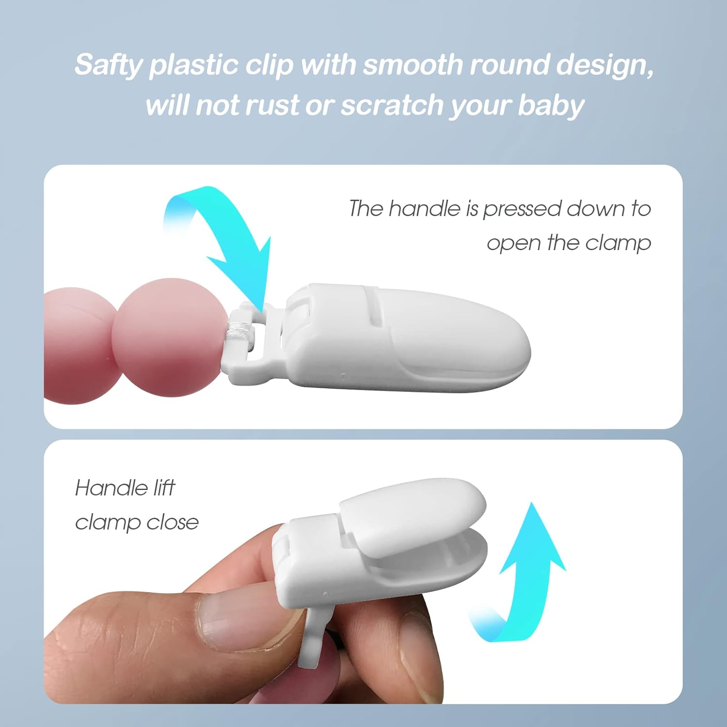 3.[Multi-Functional]—— The pacifier holder clip silicone can prevent the pacifier from falling, keep the pacifier clean and sterile.