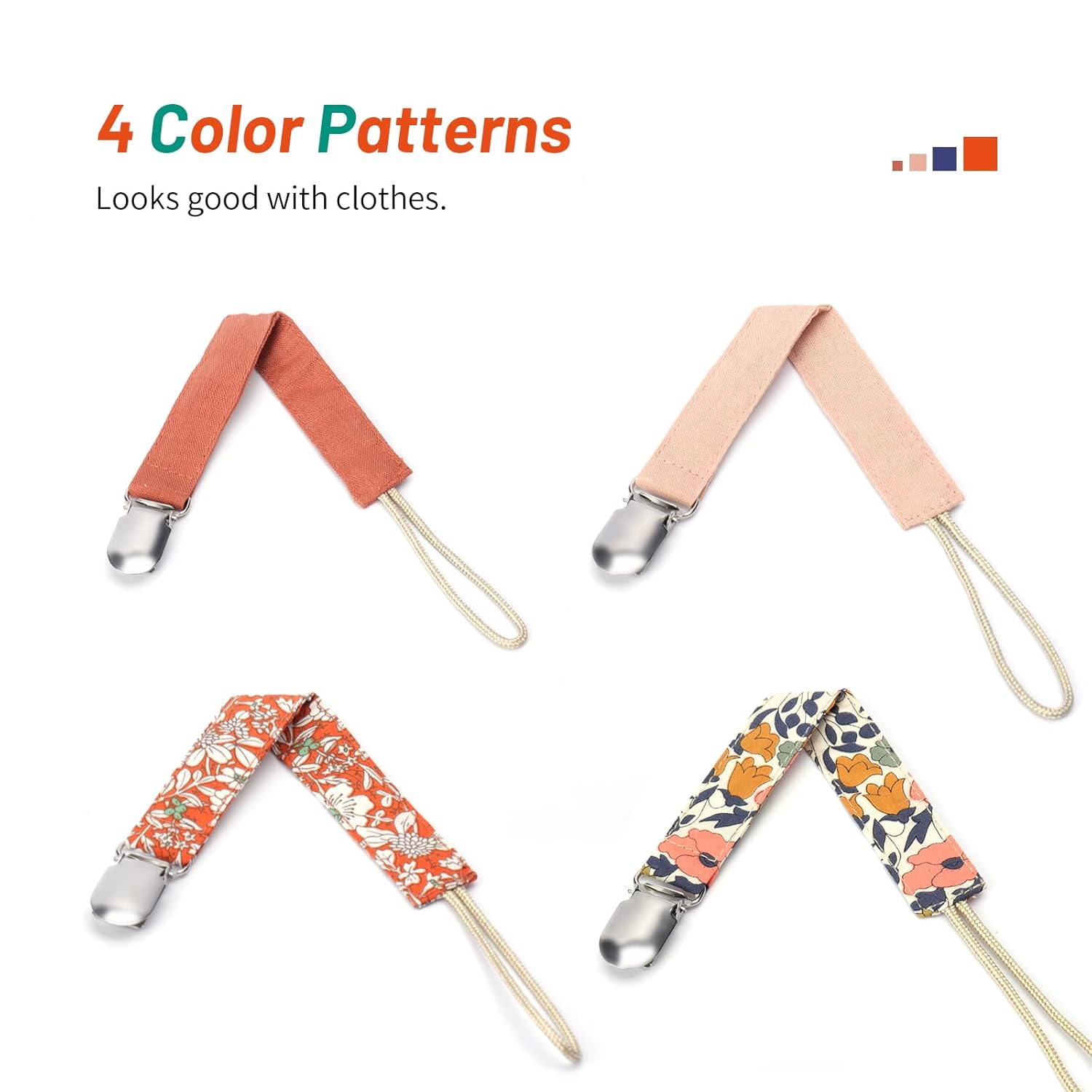 Pacifier Clips Baby Girl, Binky Clip Holder, 4 Pieces, Floral, Cotton and Linen Soft Fabric, for Babies During Teething