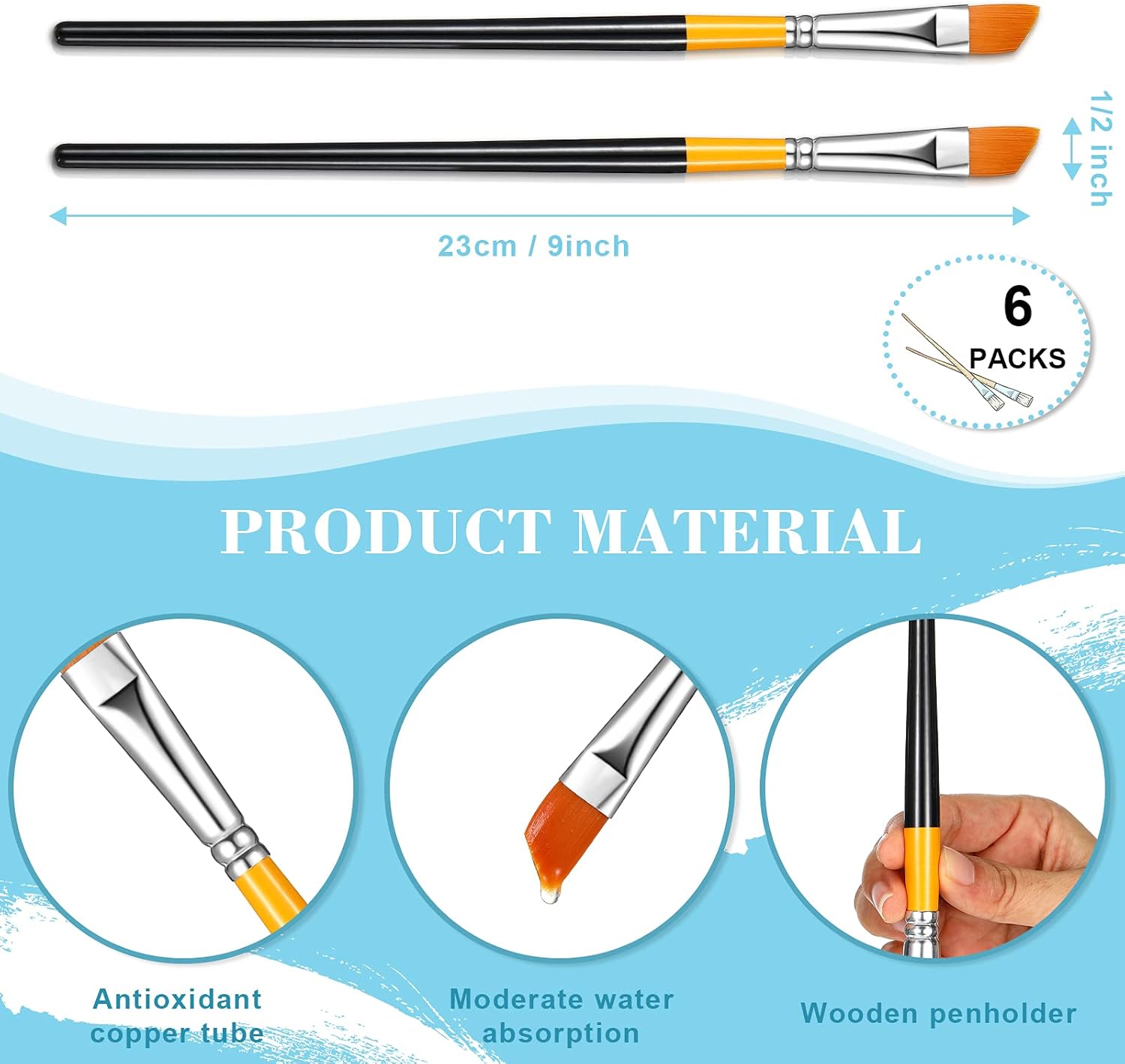 What will you receive: the package comes with 6 pieces of angled flat art paint brushes, and the sufficient quantity can meet your various painting needs; These nylon hair brushes are fixed with exquisite metal ferrules, and the brushes hair will not loosen or fall off