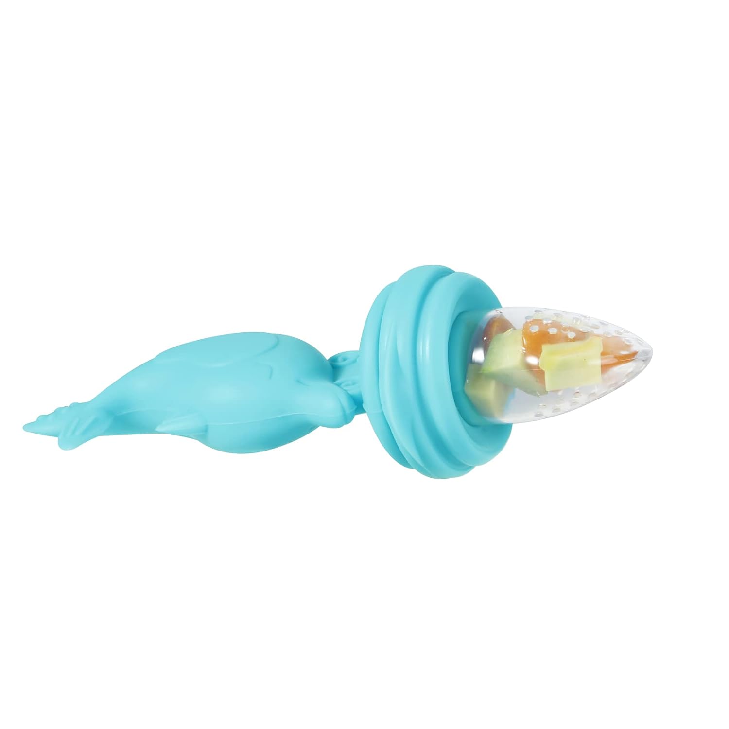 【PROTECTIVE CAP】 Our silicone food pacifier for babies come with a protective cap. Not only does this cap keep the silicone tip clean and hygienic, but also stops you covering your hands with baby food while you fill the food reservoir. Once you have filled the food reservoir to capacity, you simply lock the handle into position and give it to your baby.