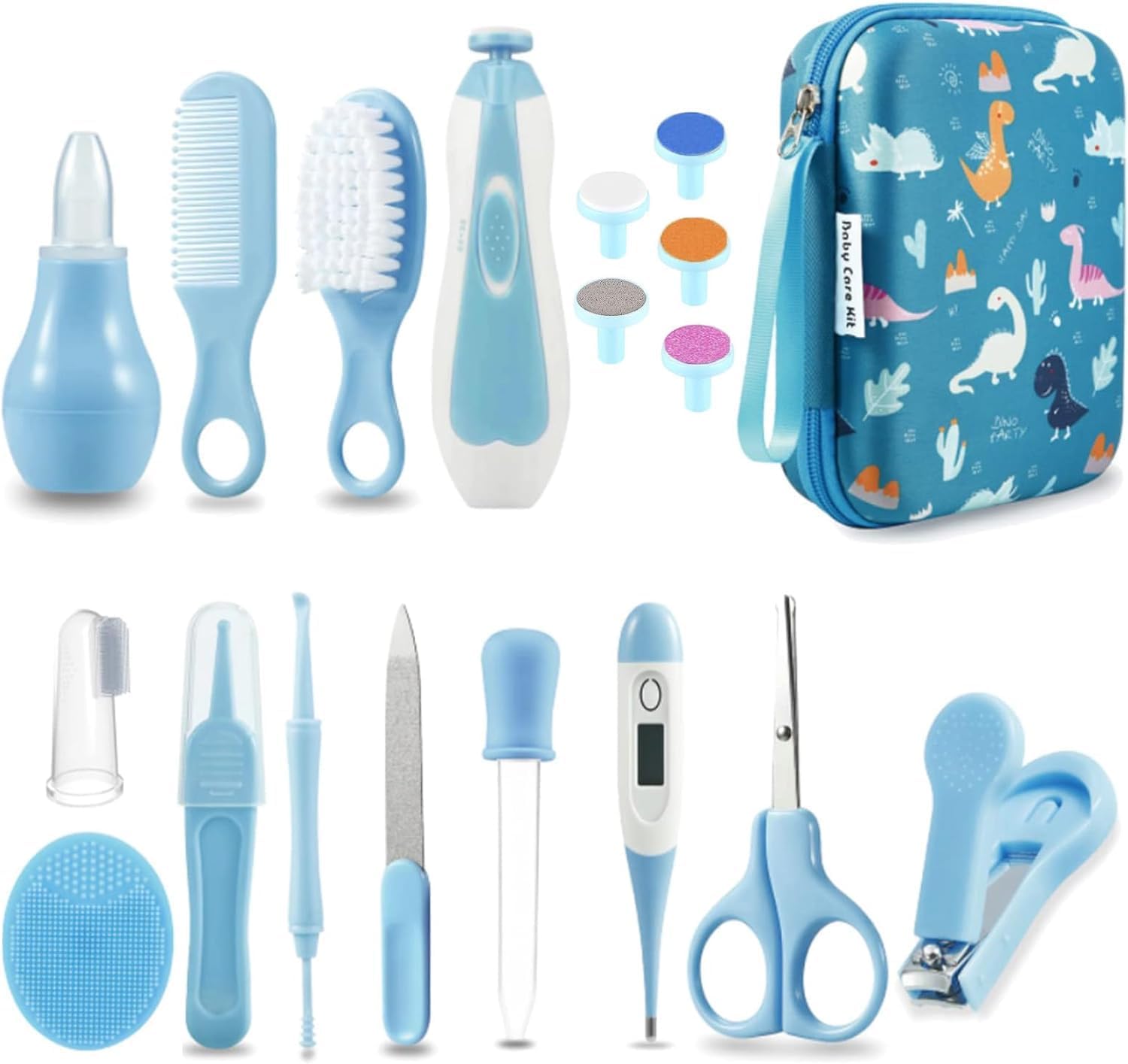 PandaEar Baby Healthcare and Grooming Kit, Baby Nursery Health Care Set, Electric Safety Nail Trimmer Newborn Essentials Kit for Infant Toddlers Kids (19 in 1, Blue)