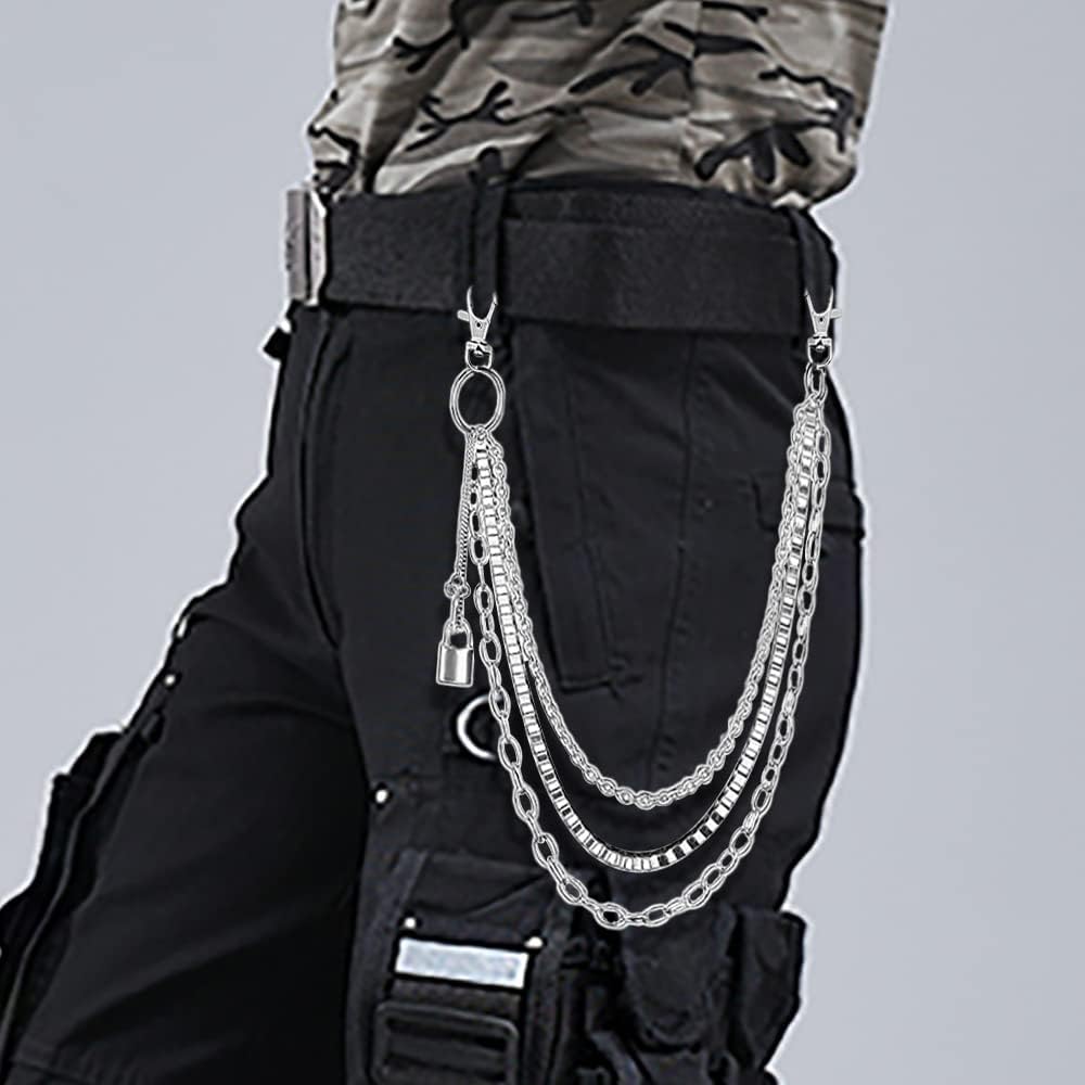 Pants chain, Belt chains for women men, 3 Layer Punk Pocket Chains for Hip Hop Rock Jeans Punk Trouser Wallet Pants Jeans Silver Metal Multilayer Body Link Chains, Decoration Clothes, Style 4