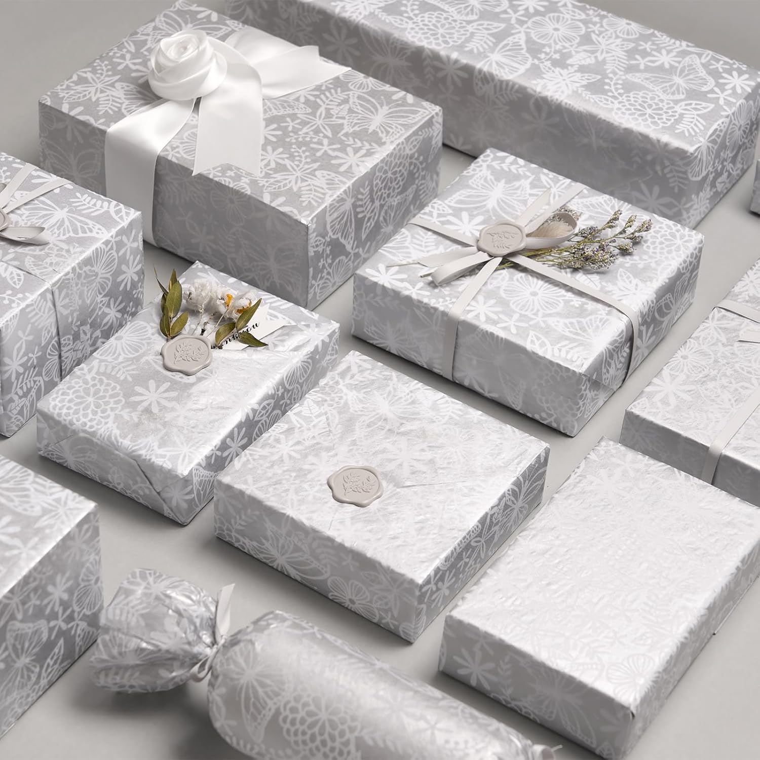 High-Quality Material for Lasting Beauty:Made from high-quality tissue paper, this wrapping paper is both sturdy and tear-resistant. The metallic silver finish is long-lasting, ensuring that your wrapped gifts will retain their beauty and elegance for a long time.