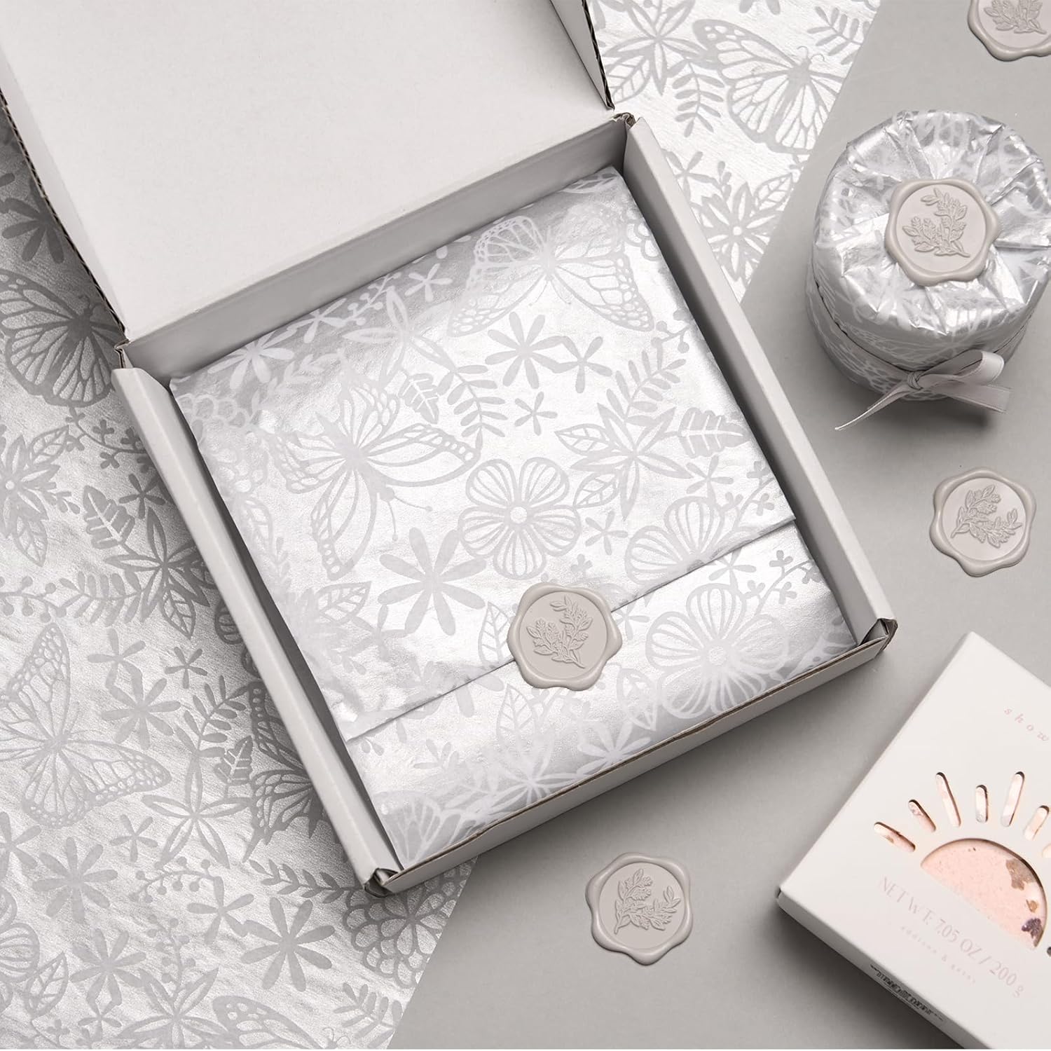 Ideal for Silver Wedding Themes:Complement your silver wedding theme perfectly with this metallic silver butterfly tissue paper. Whether you’re wrapping favors, creating table decorations, or dressing up your gift tables, this paper will bring a touch of glamour and romance.