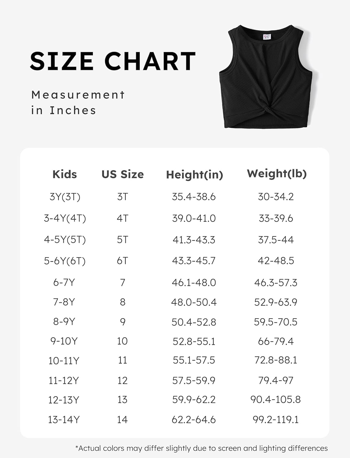PATPAT Girls Kids Solid Cute Athletic Dance Shirts Tank Crop Tops Preppy Clothes Outfits for Girls Size 6-12Y