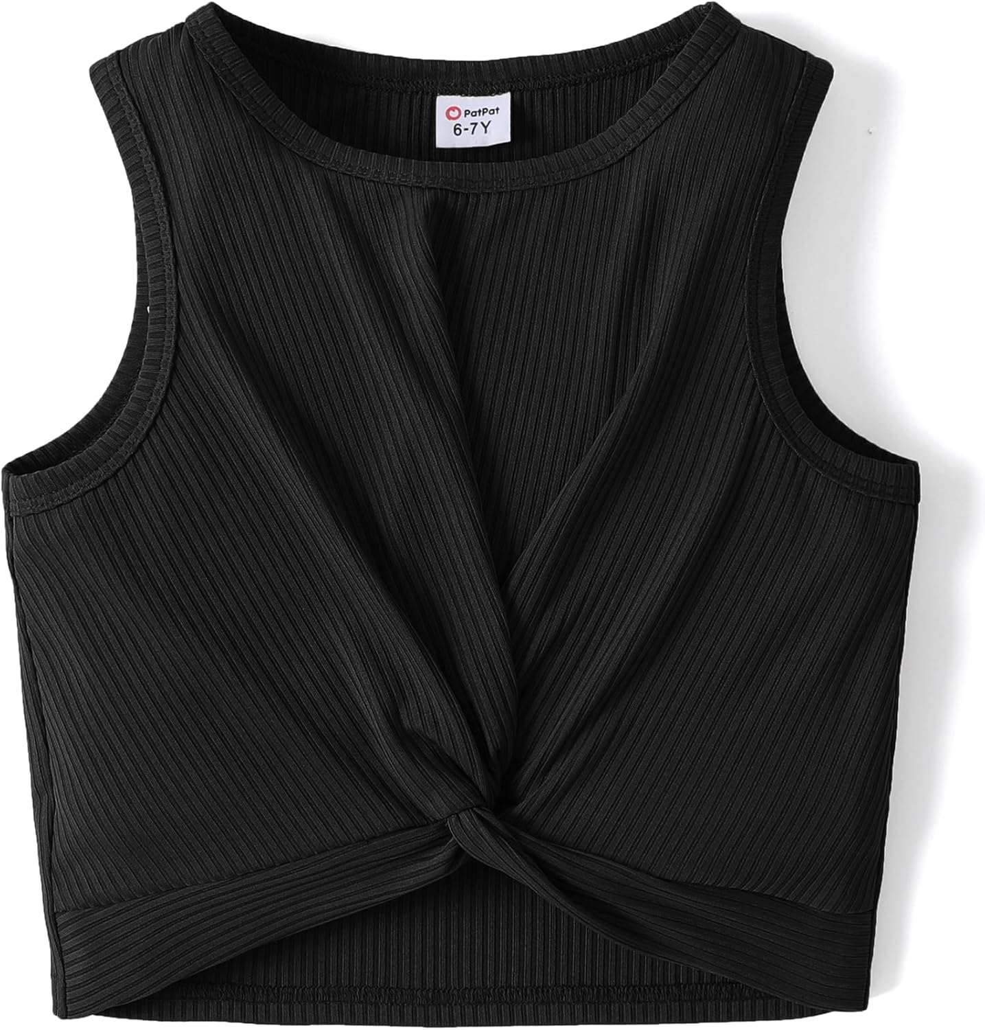 PATPAT Girls Kids Solid Cute Athletic Dance Shirts Tank Crop Tops Preppy Clothes Outfits for Girls Size 6-12Y