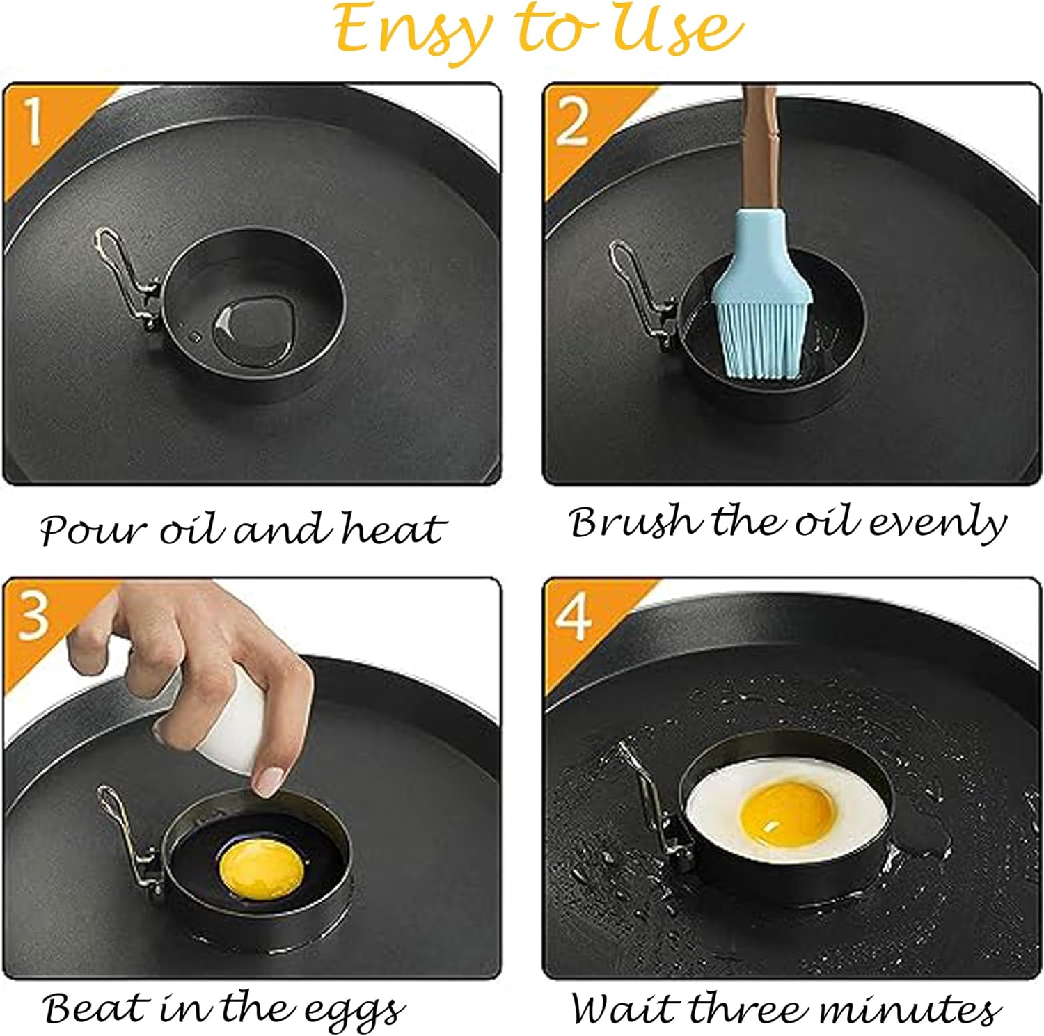 🍳【EASY TO USE】:Put the egg ring on the frying pan,apply oil to the surface of the pot,then break the eggs to cooking.Our egg rings is light and the handle is made of stainless steel, that is easy to clean.