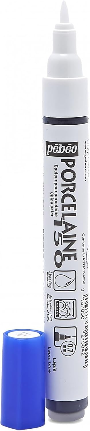 Pebeo Porcelaine 150 Assorted China Paint Fine Tip Markers DIY Arts & Crafts Supplies, Fun for Kids, Heat-Resistant Finish, Microwave & Dishwasher Safe Formula, 1 Count (Pack of 1), Lapis Blue