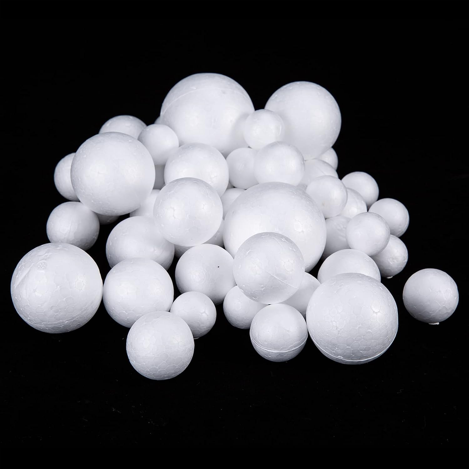Size: 48 solid polystyrene spheres, 6 size, diameter size of 0.98inch/2.5cm, 1.18inch/3cm, 1.38/3.5cm, 1.57inch/4cm, 1.97inch/5cm, 2.36inch/6cm