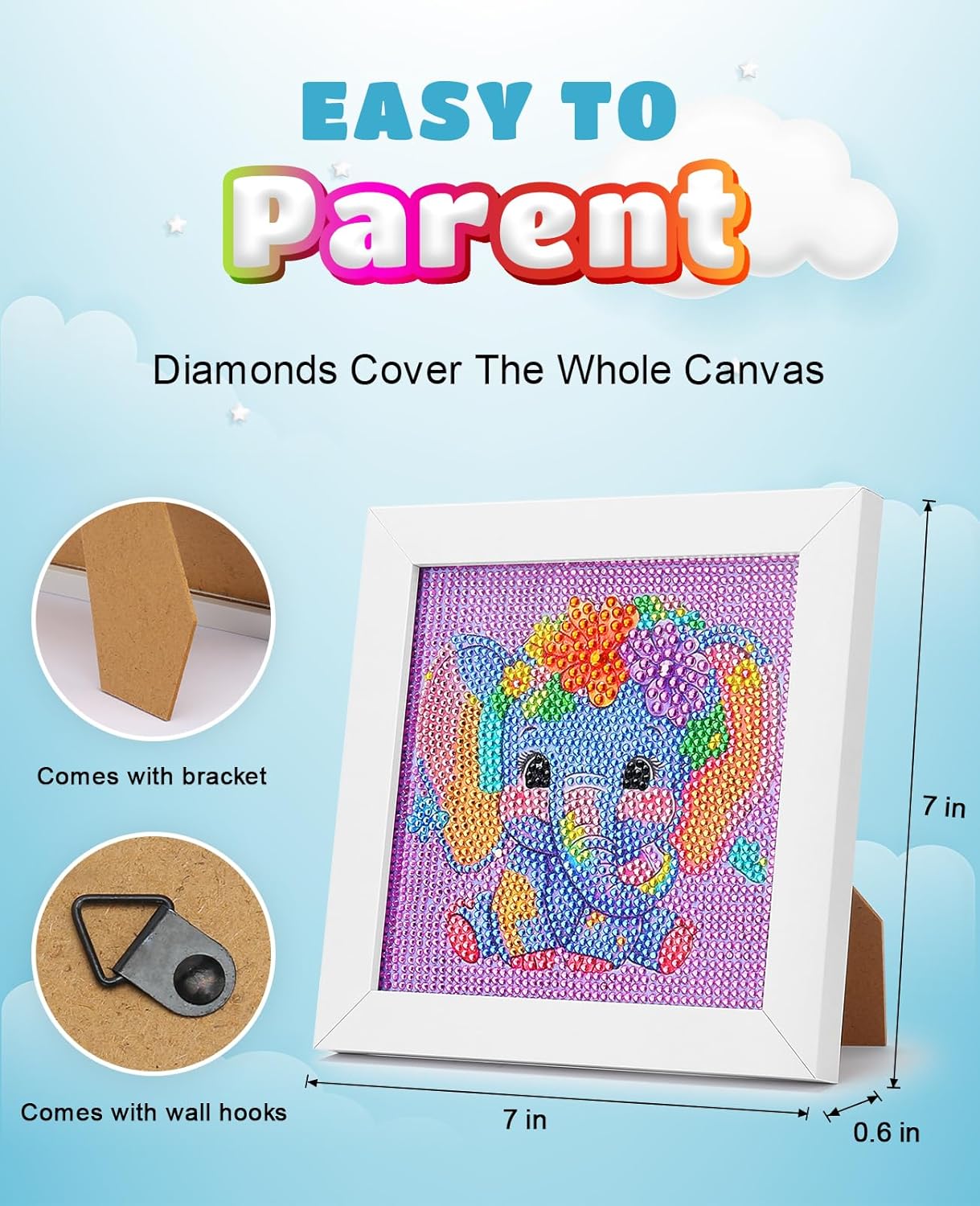Exquisite Wooden Framed Diamond Artwork for Kids:You will receive a children’s diamond art piece with a beautiful wooden frame, showcasing the artwork handcrafted by girls and boys in a meaningful way. The wooden frame comes with a transparent protective film to ensure long-term preservation of the diamond art.